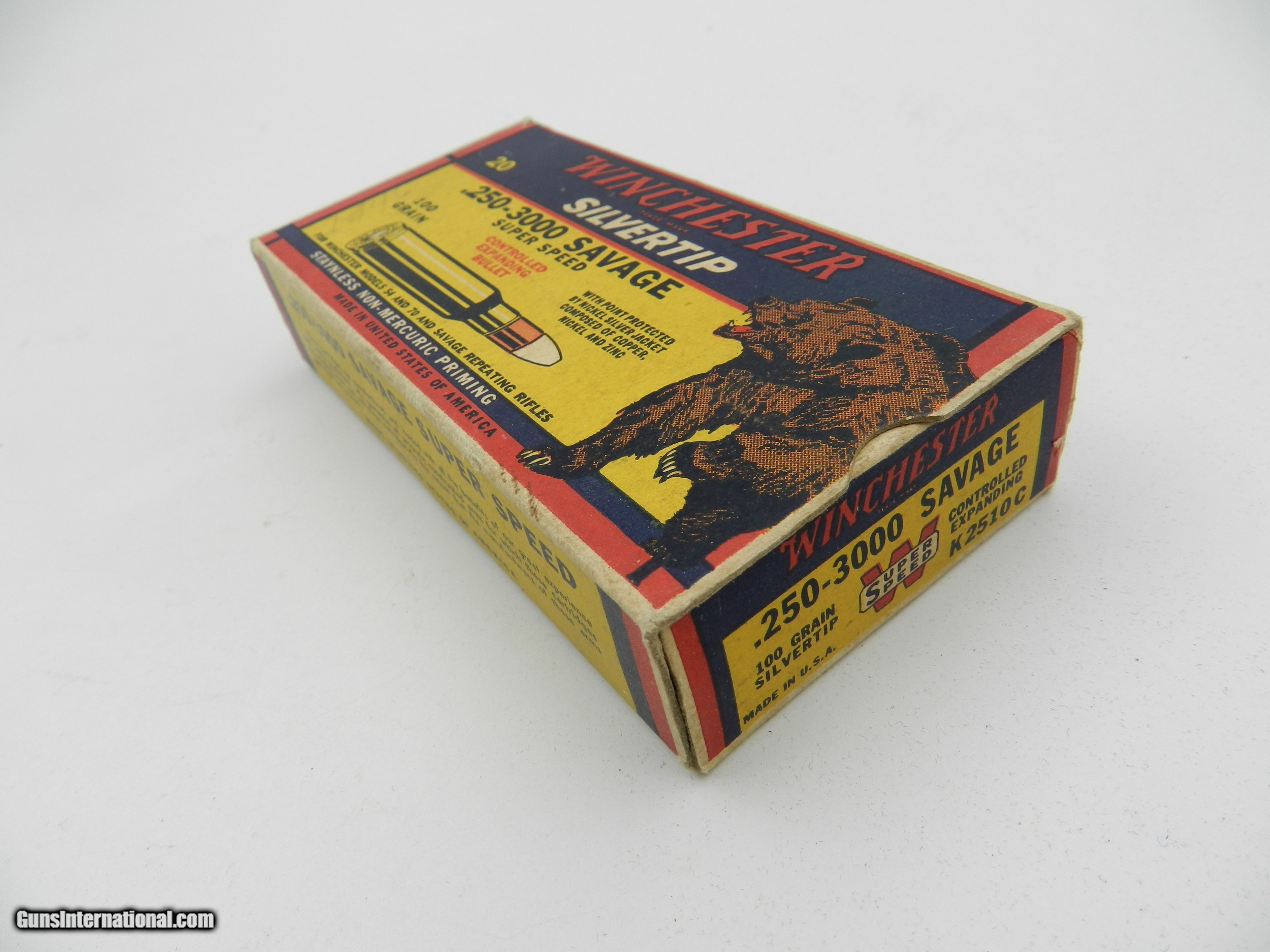 Collectible Ammo: Winchester Silvertip .250-3000 Savage 100 gr Bear Label Box, Catalog No. K2510C