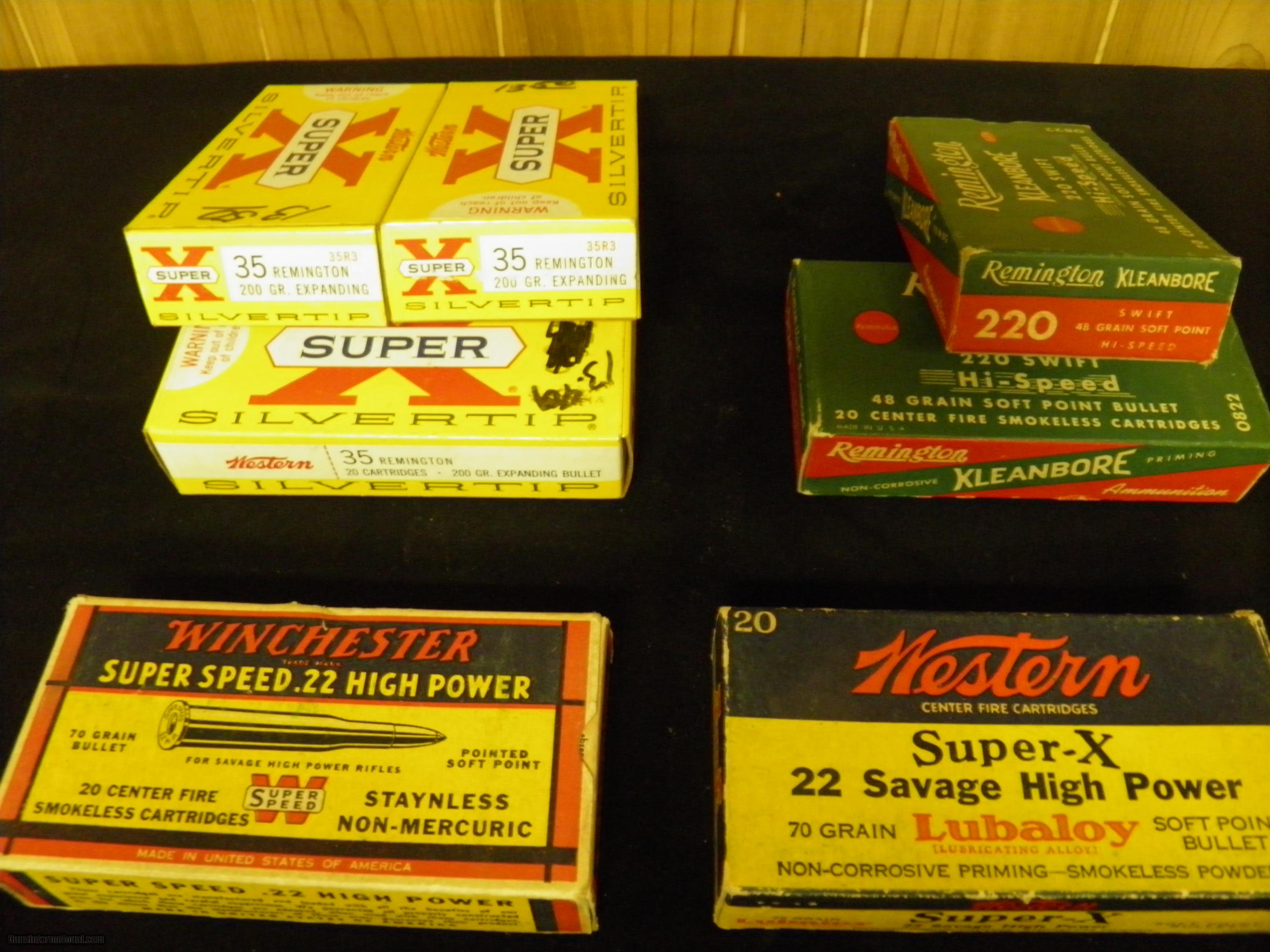 COLLECTOR AMMO- 35 REMINGTON-22 HI-POWER-22 SAVAGE HIGH POWER- 220 SWIFT