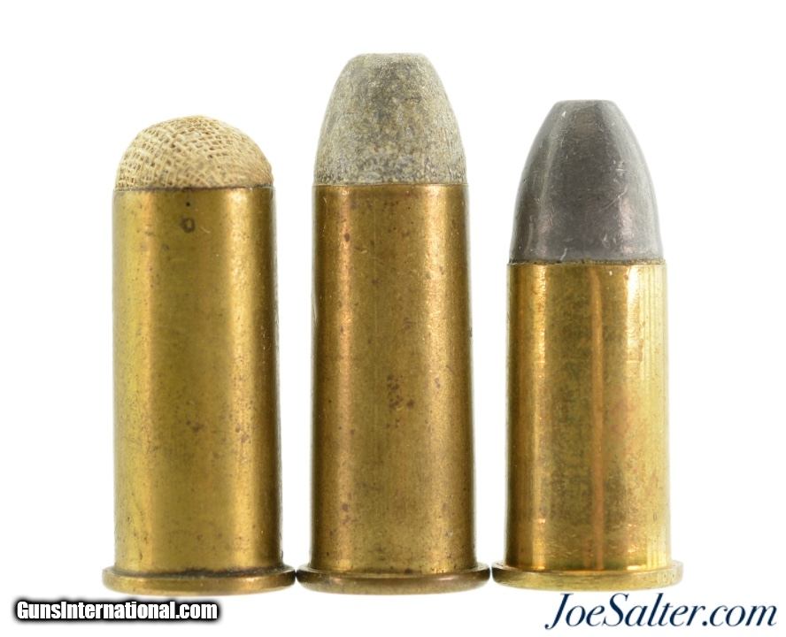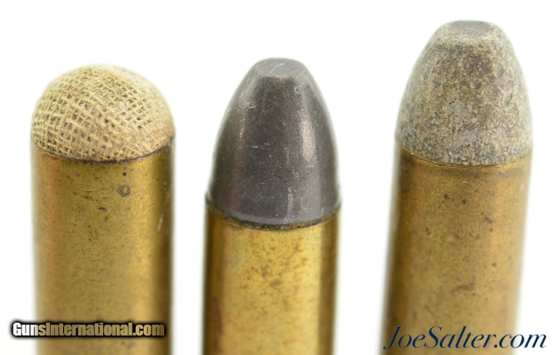 Description: This is a lot of three .50-70 Carbine collector cartridges. Included are two Winchester rounds, one shot and one with conical lead bullet both With "W.R.A. Co." head stamps. Also included is a REM-UMC marked round with lead bullet. SOLD |