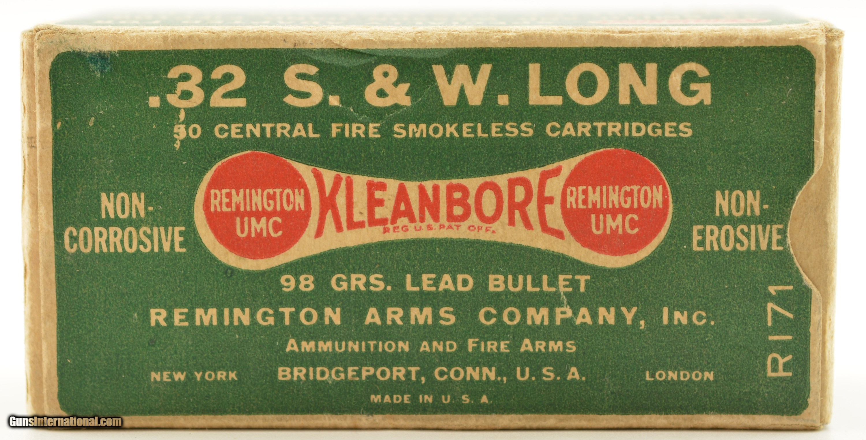 Early 1930's Remington 32 S&W Long “Dog Bone" Kleanbore Ammo Full Box
