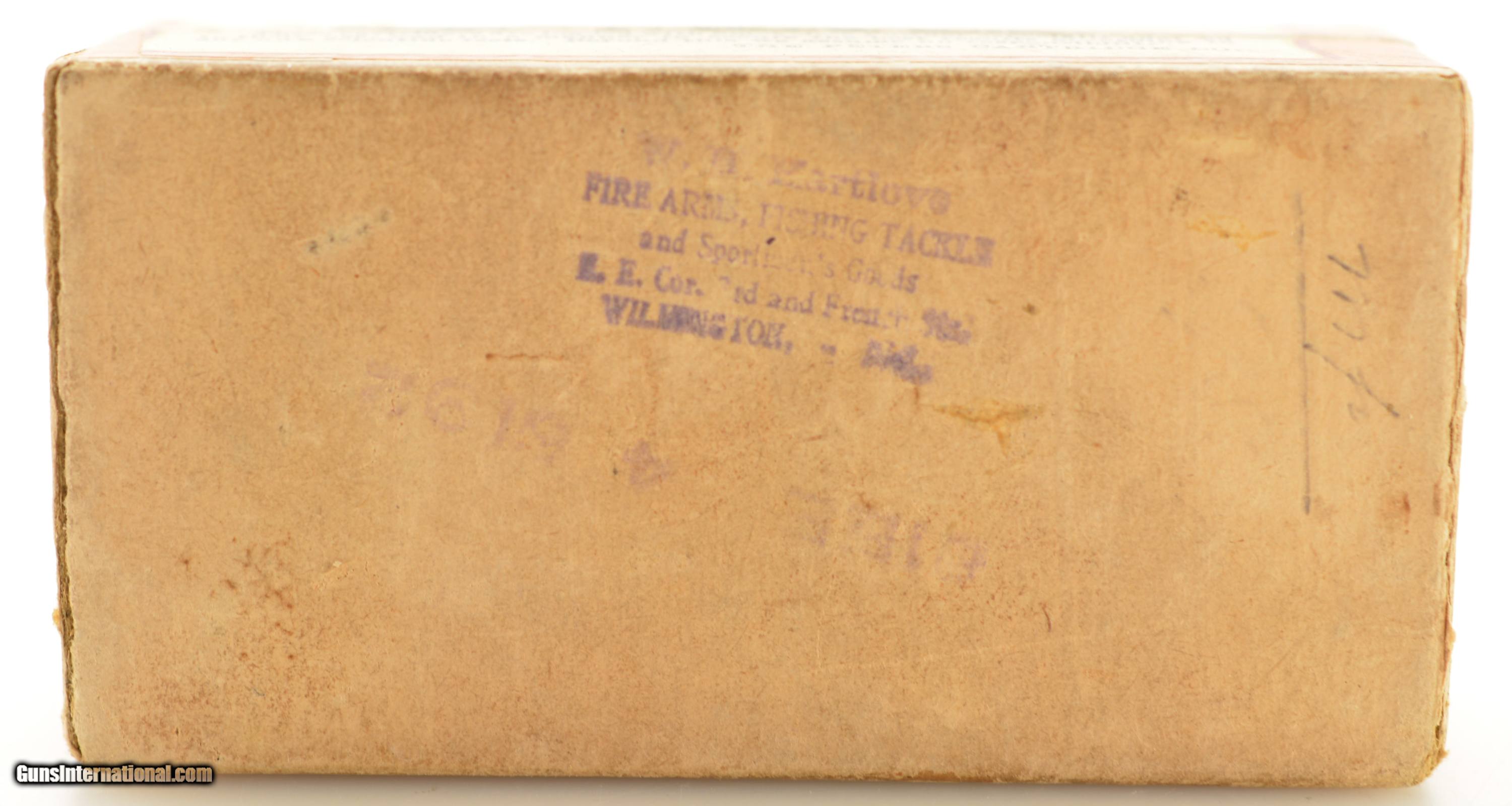 Description: This is an early, full box of .38 Special manufactured by Peters, No. 867, with round nose lead bullets. The two piece half-split box is in very good condition with good graphics having some missing image on the primary label and a repair to the top side split. The cartridges all have the correct Peters headstamp with some in excellent, shiny new condition and others with a dark patina – probably from time in a gun belt and one round having a “u" primer. A very good box for the collector. SOLD Manufacturer: Peters Model: Ammo Caliber Info: .38 Spl Gauge Info: .38 Spl |