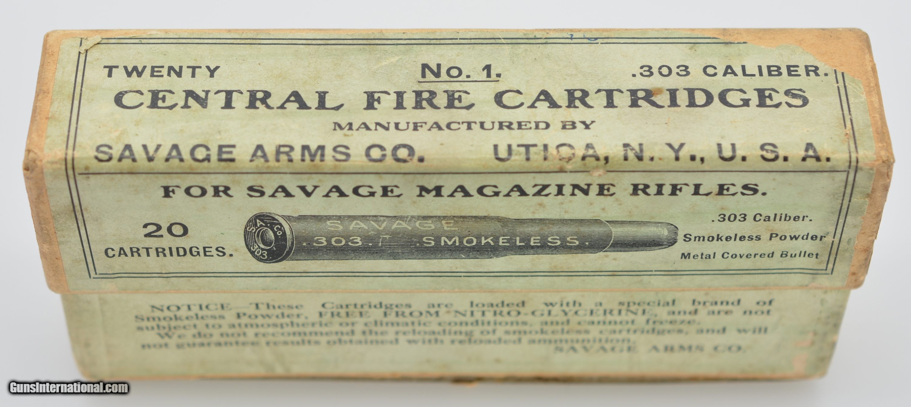 Early Rare 303 Savage Box Ammunition No. 1 Metal Covered Full