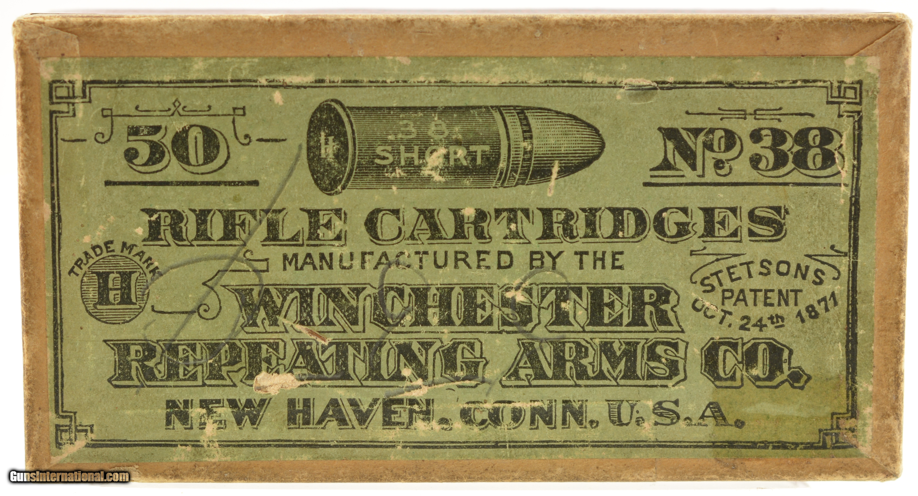 Early Winchester Box 38 Short Rim Fire Oct. 24, 1871 Stetsons Patent D