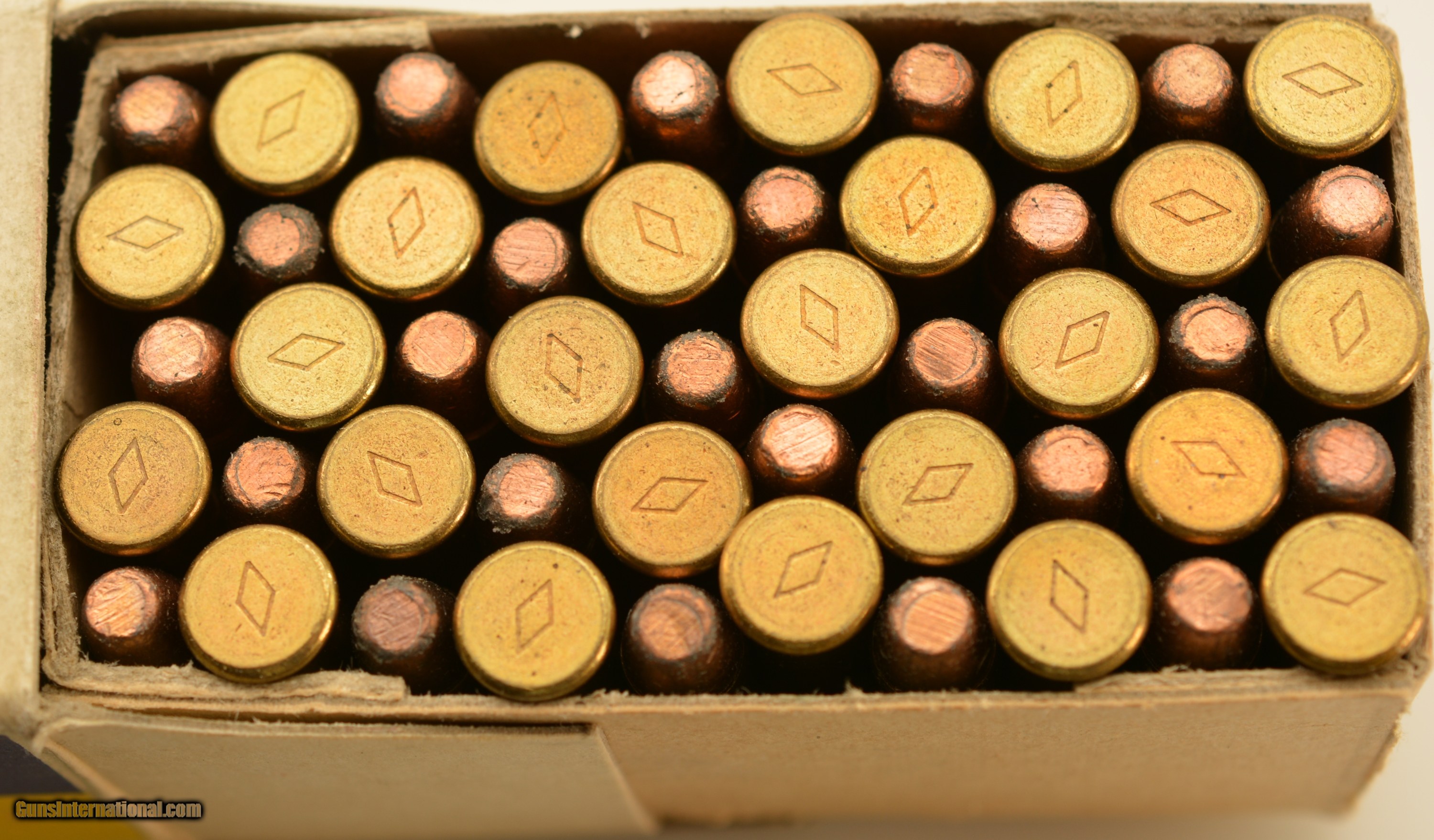 Description: This is a full box (50 rounds) of .25 Stevens Rim fire ammunition in the iconic, colorful Western 'Bullseye' box with 65 grain Lubaloy bullets. The box is in excellent condition with sound edges and corners showing light shelf and handling wear with excellent, as new, cartridges. SOLD Manufacturer: Western Model: Ammo Caliber Info: .25 Stevens Gauge Info: .25 Stevens |