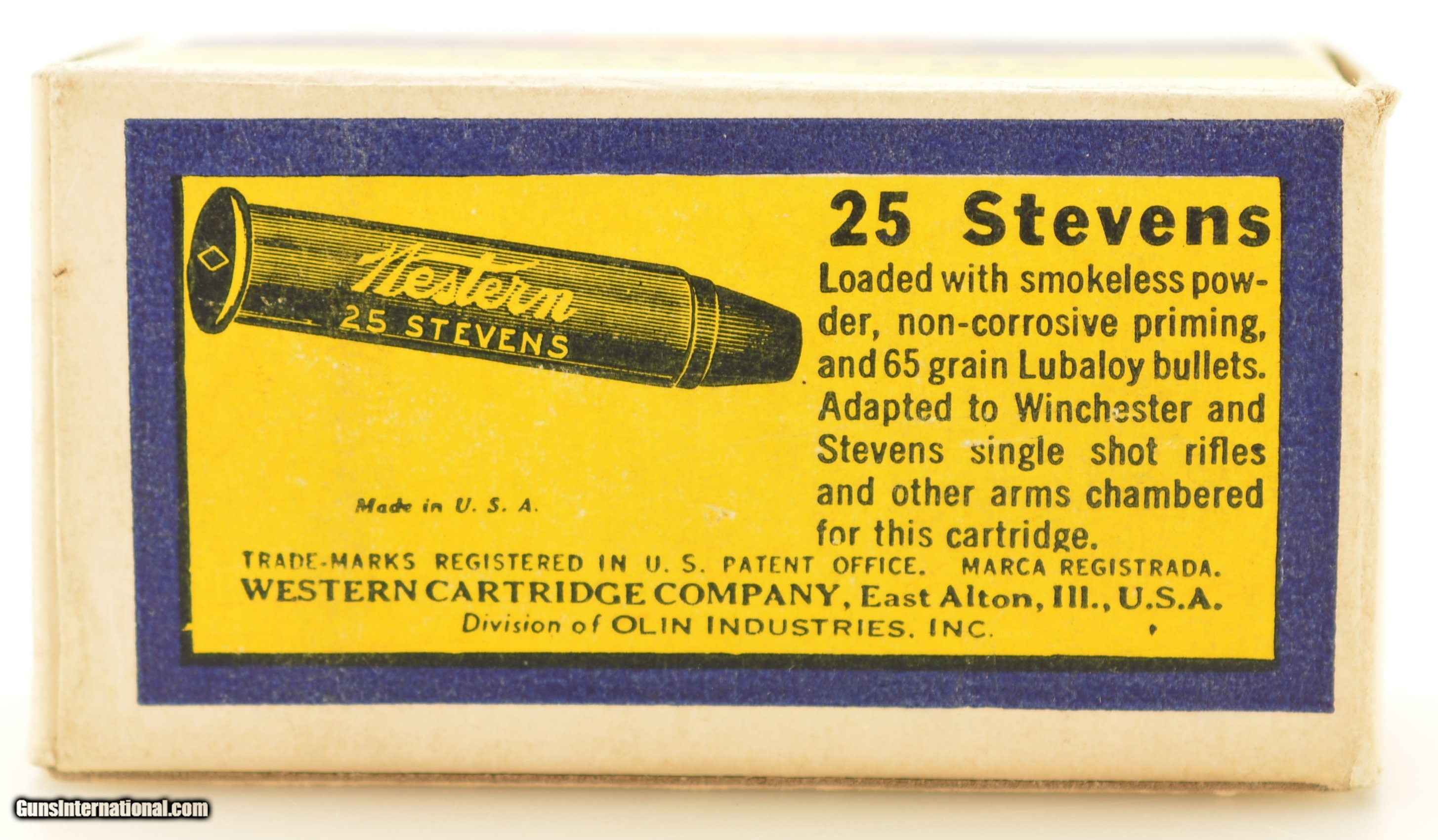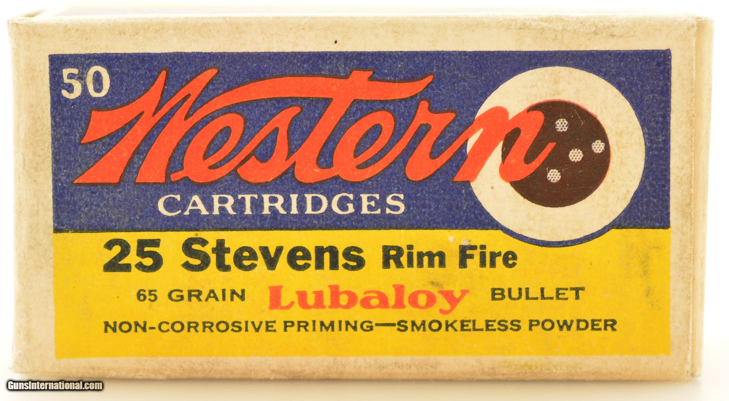 Excellent Western Bullseye Box 25 Stevens Rim Fire 50 Rounds