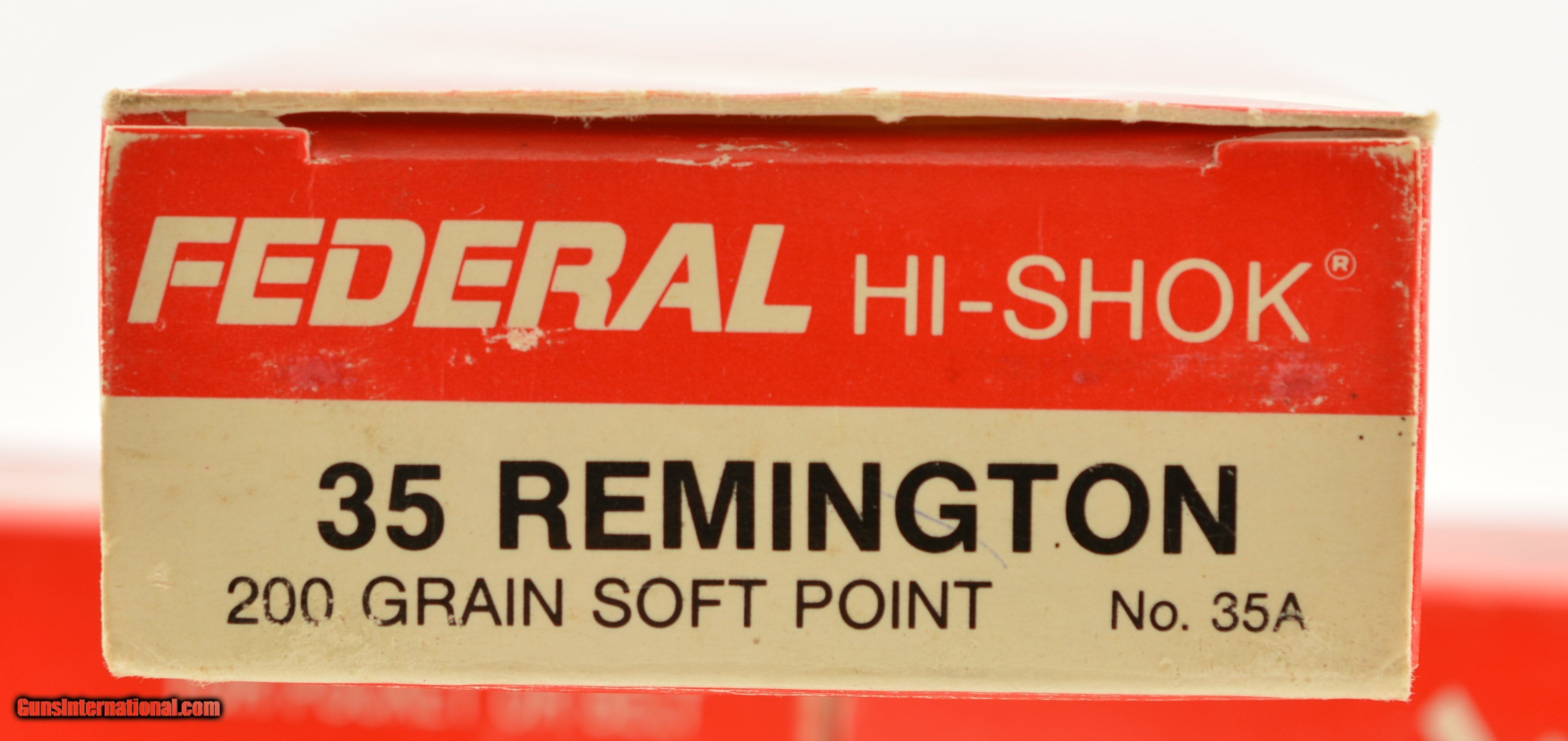 Description: This is a lot of 3 full boxes, 60 total rounds, of .35 Rem ammunition manufactured by Federal with 200 Grain Hi-Shok soft point bullets. The boxes show light shelf wear with excellent cartridges. SOLD Manufacturer: Remington Caliber Info: .35 Remington Gauge Info: .35 Remington |