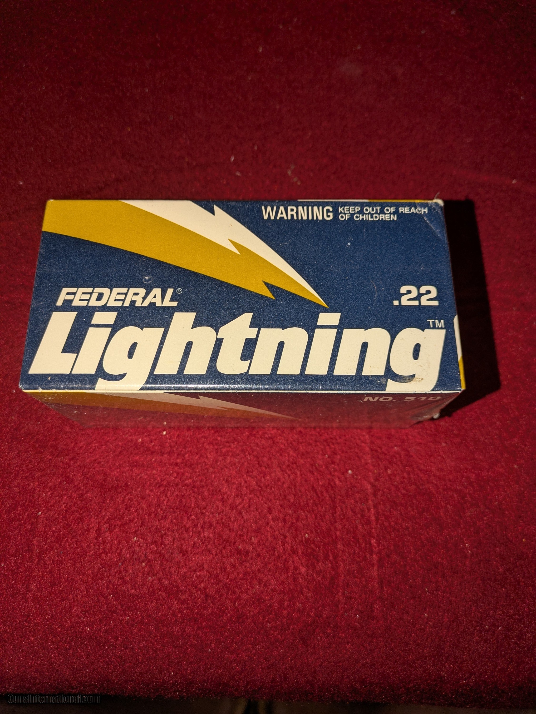 Description: FEDERAL LIGHTNING 500 round brick. 10-50 round boxes inside of high velocity 22lr ammo. Outer sleeve is nice inside boxes are nice. Brick is wrapped for display already. I combine shipping and also accept visa and MasterCard for payment but it adds 4 percent to total. 75.00 plus shipping SOLD Rifle Caliber: .22 Long Rifle |