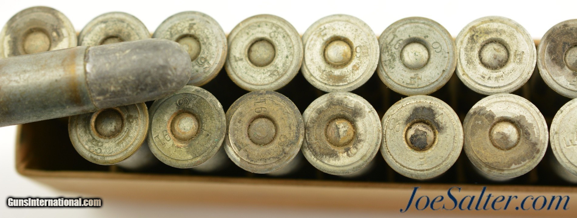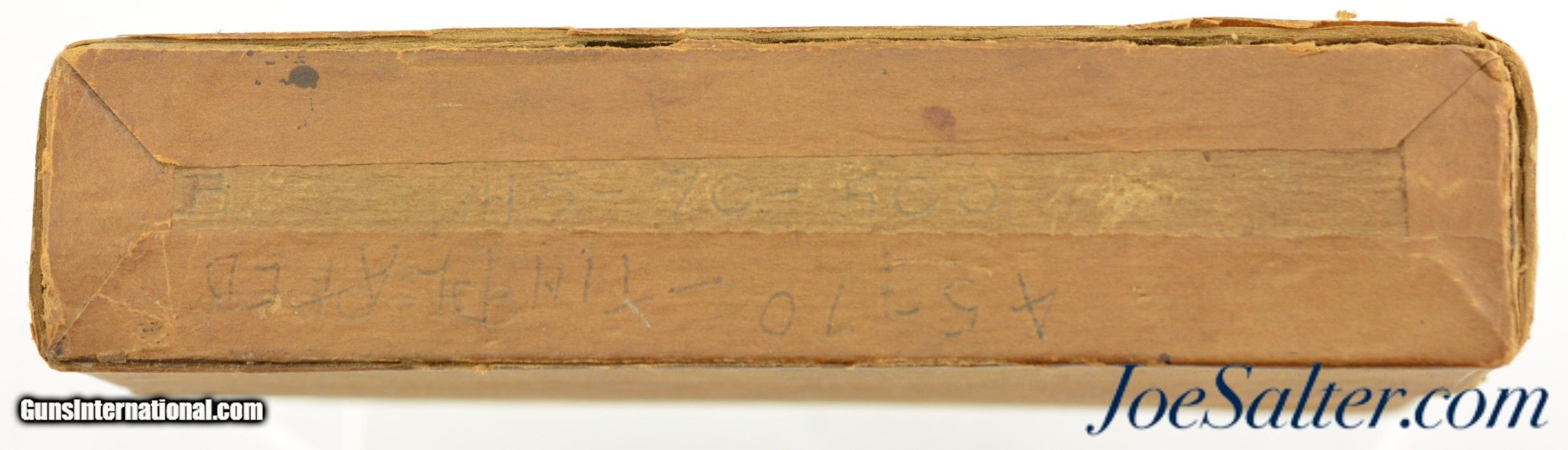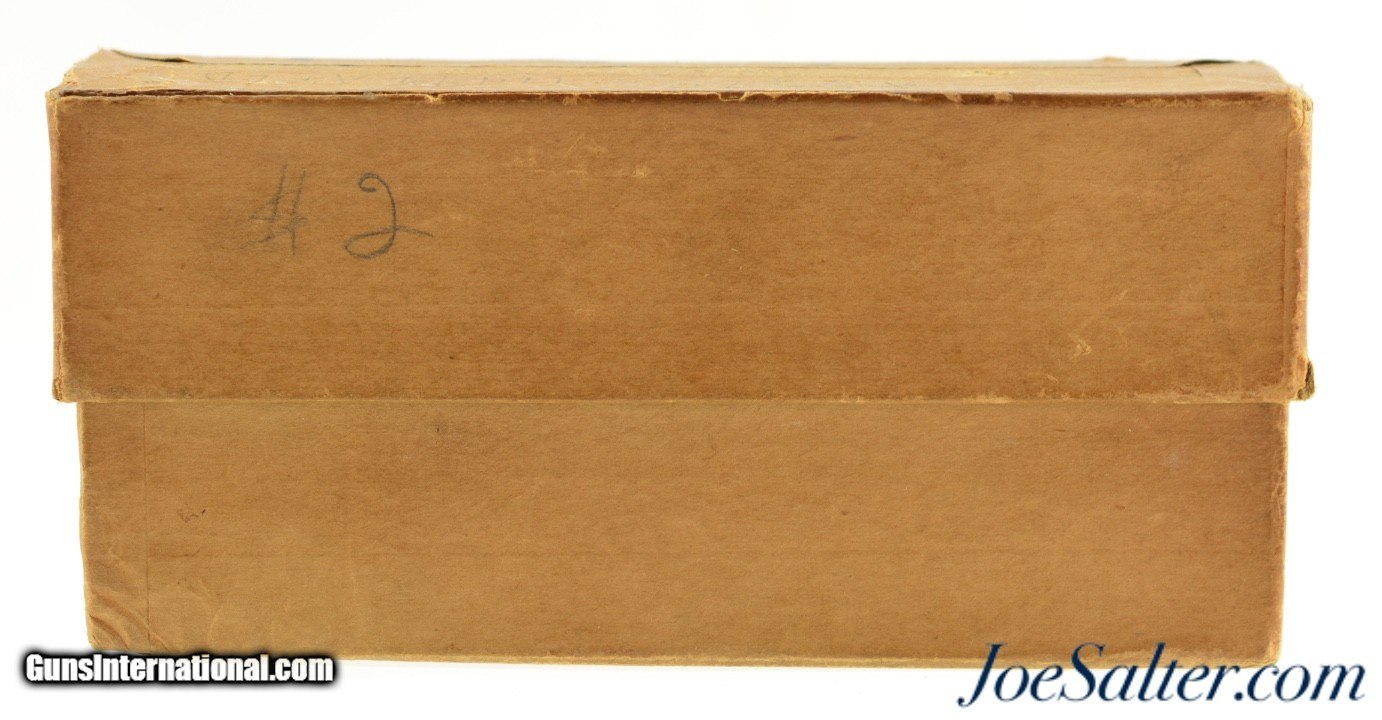Description: This is a surplus box of .45-70 ammunition manufactured by Frankford Arsenal with Tinned cases and primers having round nose lead 500 grain bullets. The dated headstamps include rounds from 1888, 1890, 1891, 1892, and 1897. An excellent assortment for the cartridge collector or to pair with your Trapdoor rifle. Price: $99.00 Contact Seller |