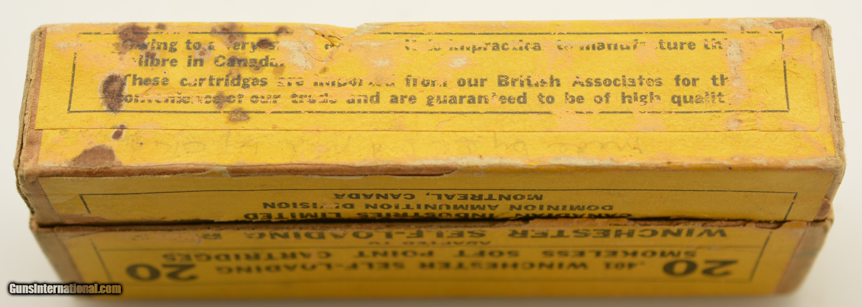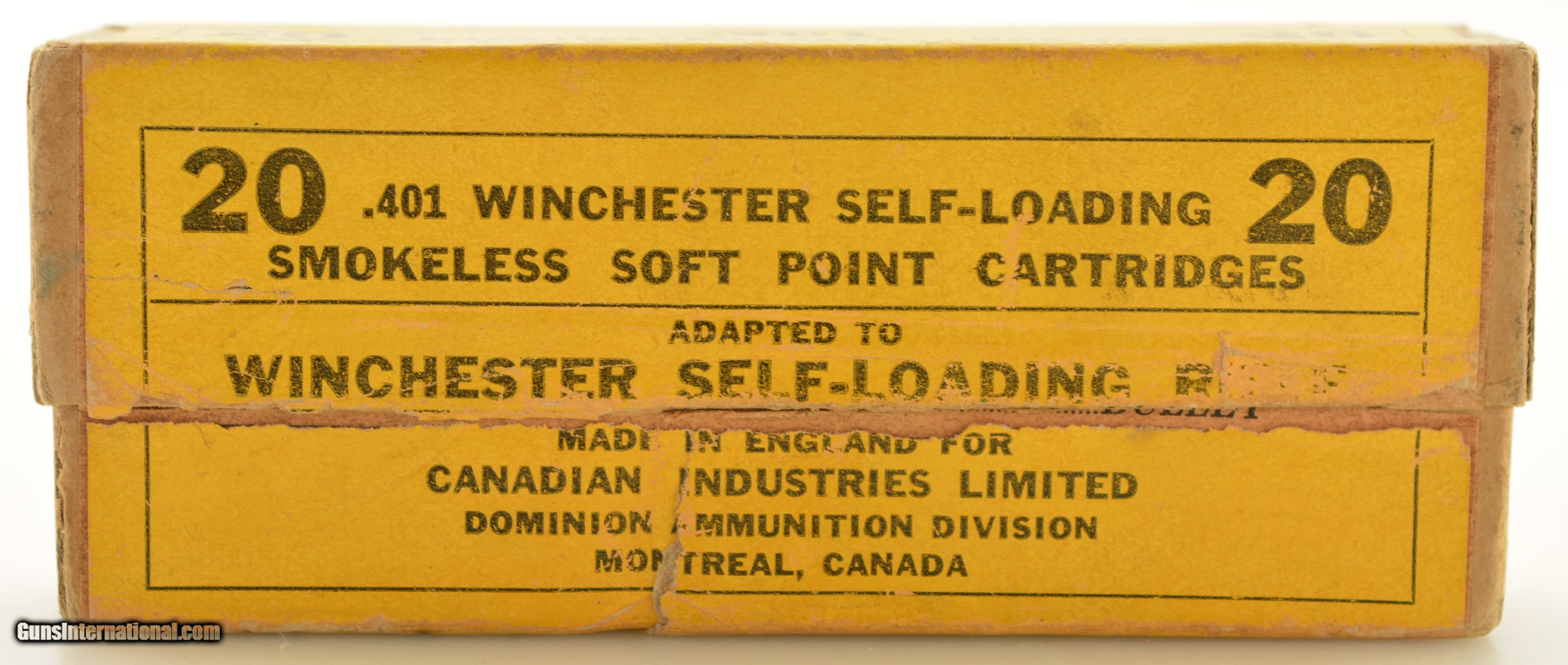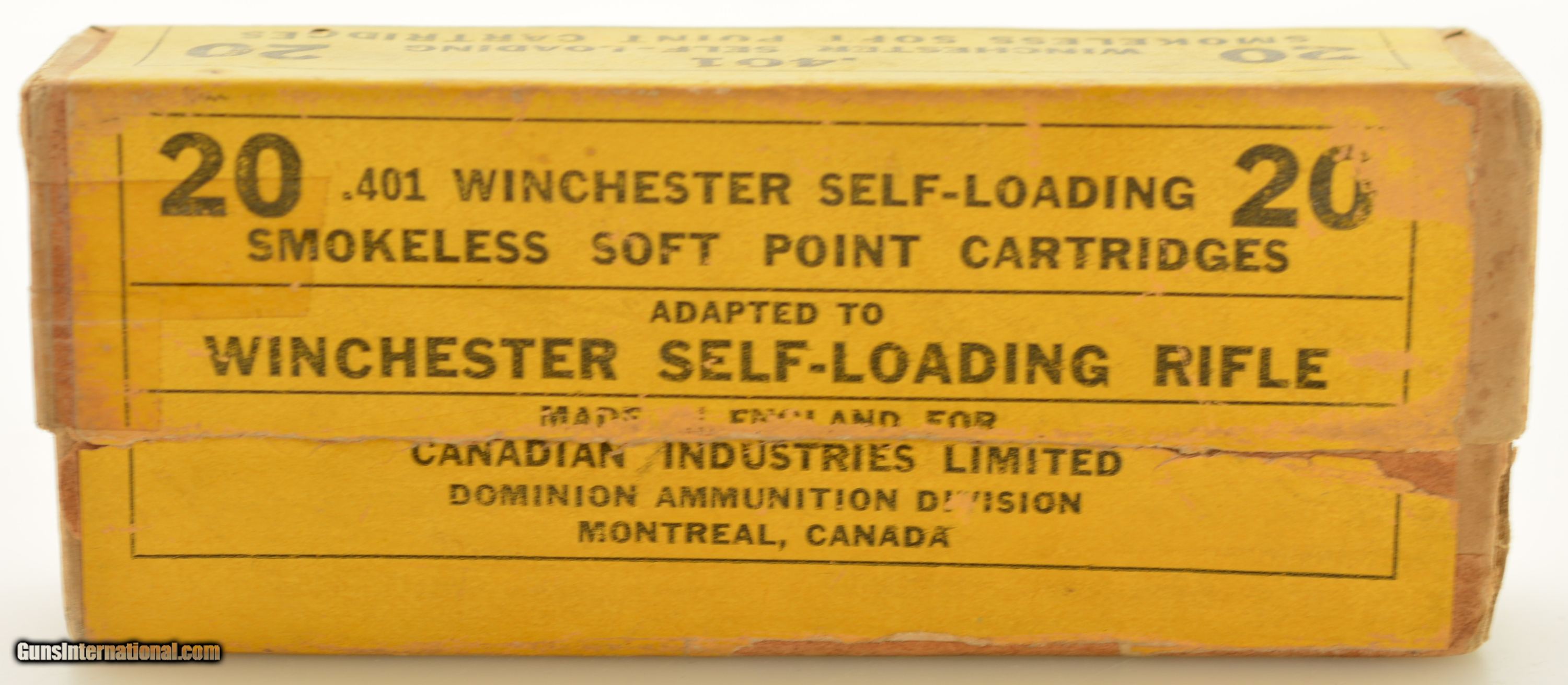 Full Box 401 Winchester Self-Loading Ammo C-I-L Kynoch 20 Rounds
