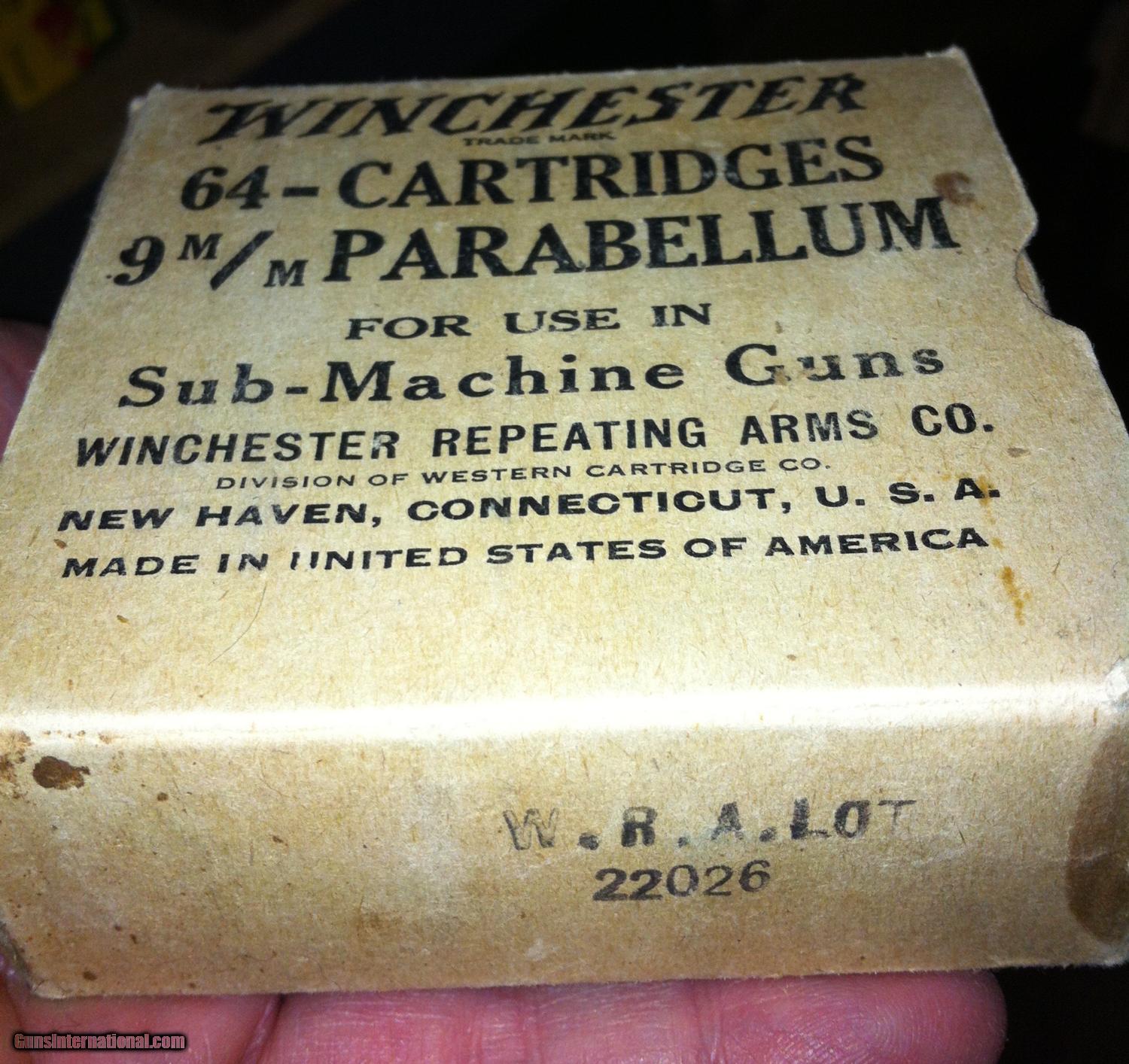 Full box of Winchester made sub-machine gun ammo -64 rounds-loaded hot for machine gun