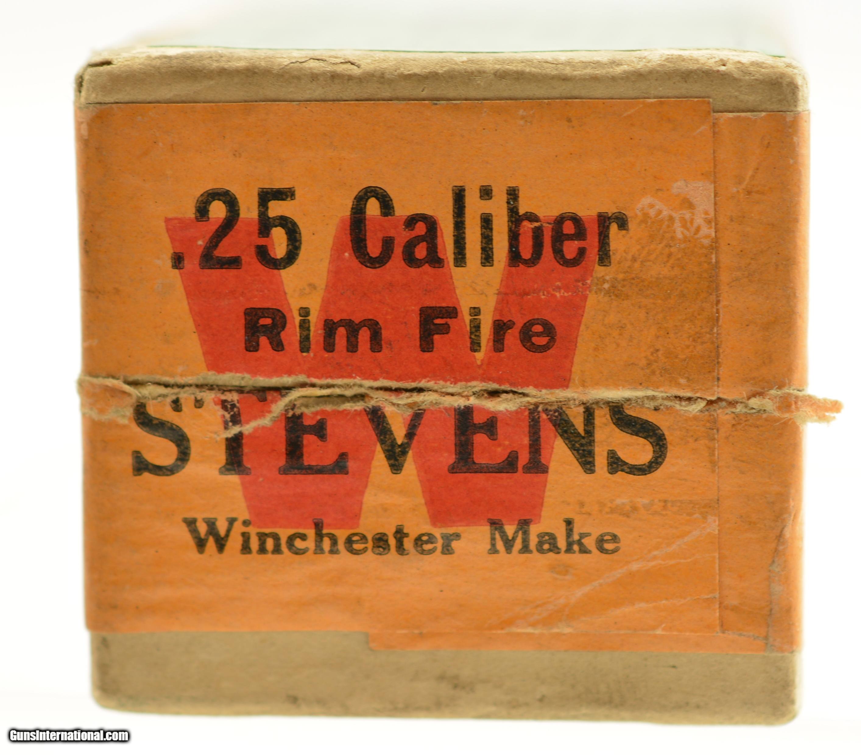Full Box Winchester 25 Stevens RF Ammunition 50 Rounds Black Powder