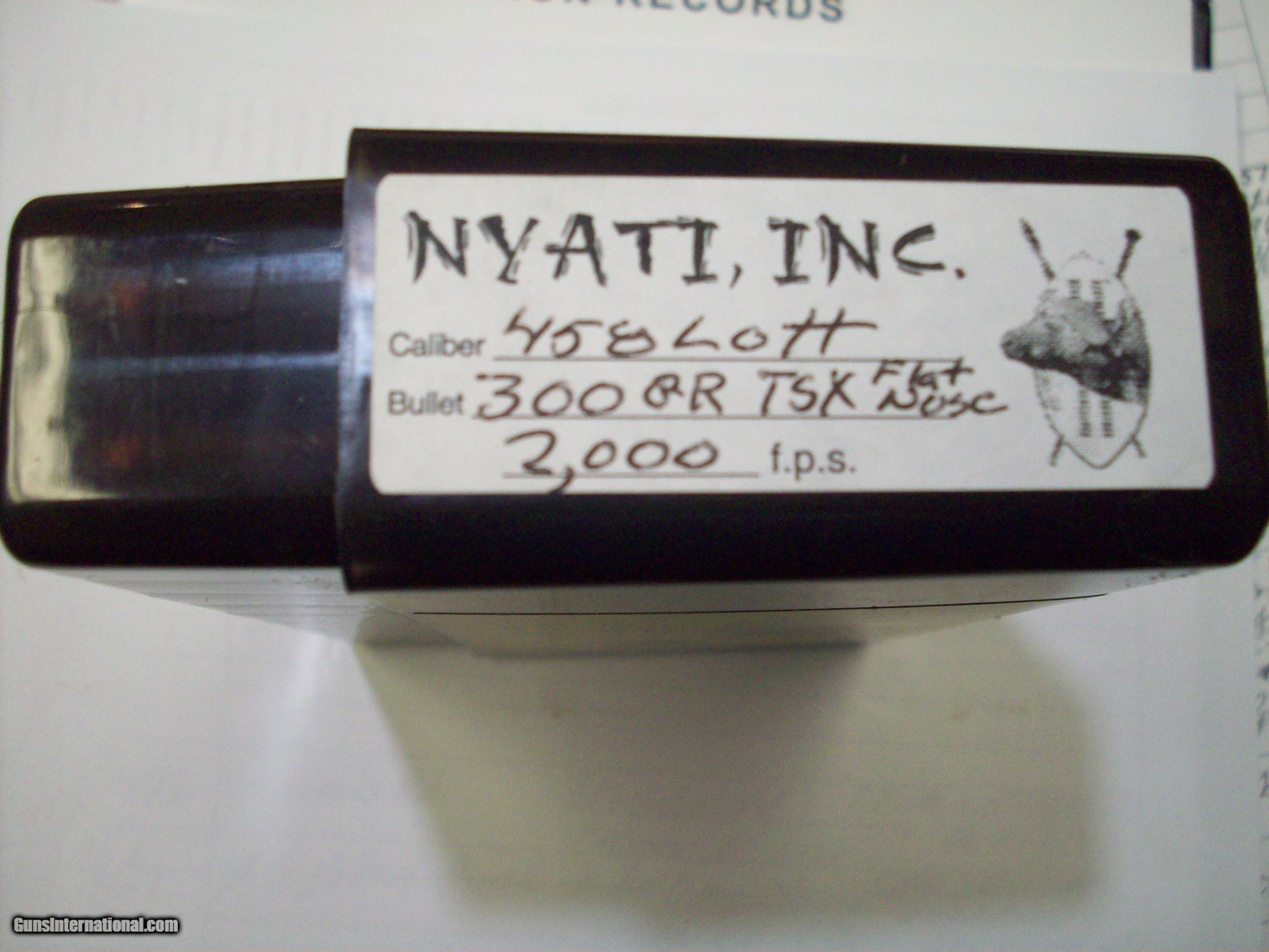 Description: Five boxes of 458 LOTT AMMO. ONE boxe of HORNADY 500 Gr. DGS. $145.00 p. THREE Boxes of HORNADY 500 DGX $160.00 each. ONE Box NYATI INC. 300 GR. TSX $120.00. $650.00 for all of them. rmgrigolettoyahoo 732 280 8750. SOLD |