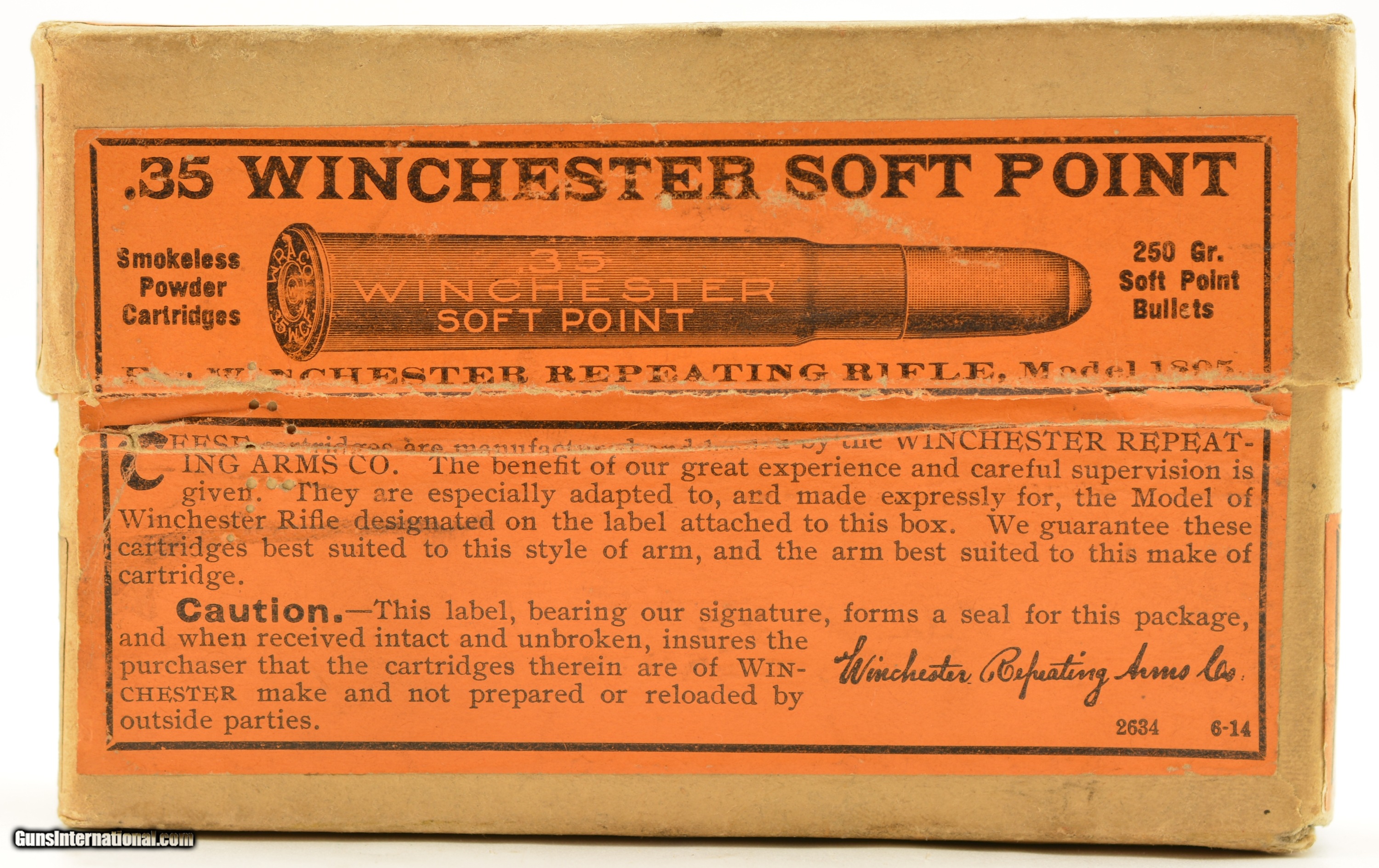 Near Excellent Winchester 35 Win Ammo 6-14 Code Full Box Soft Point