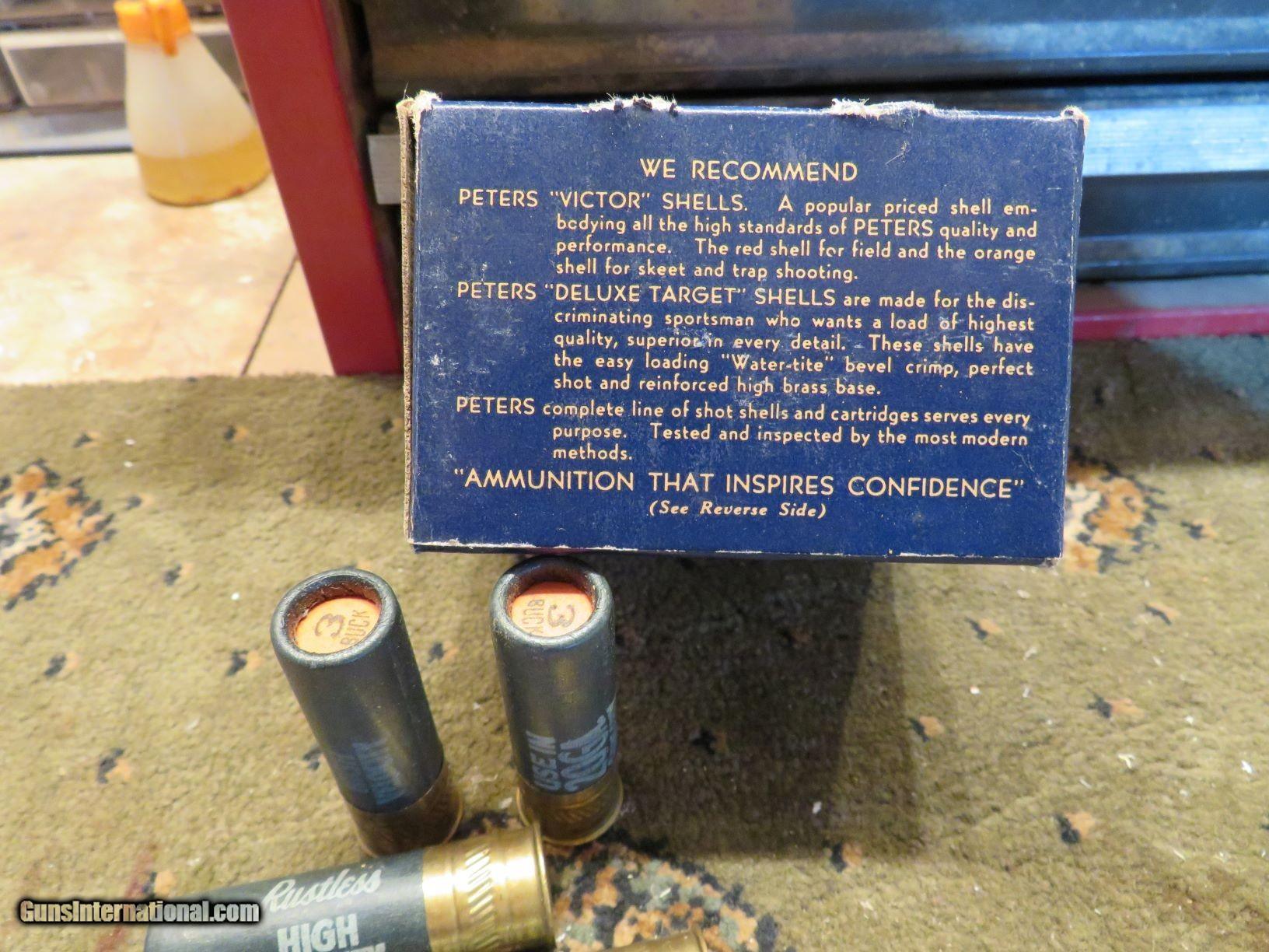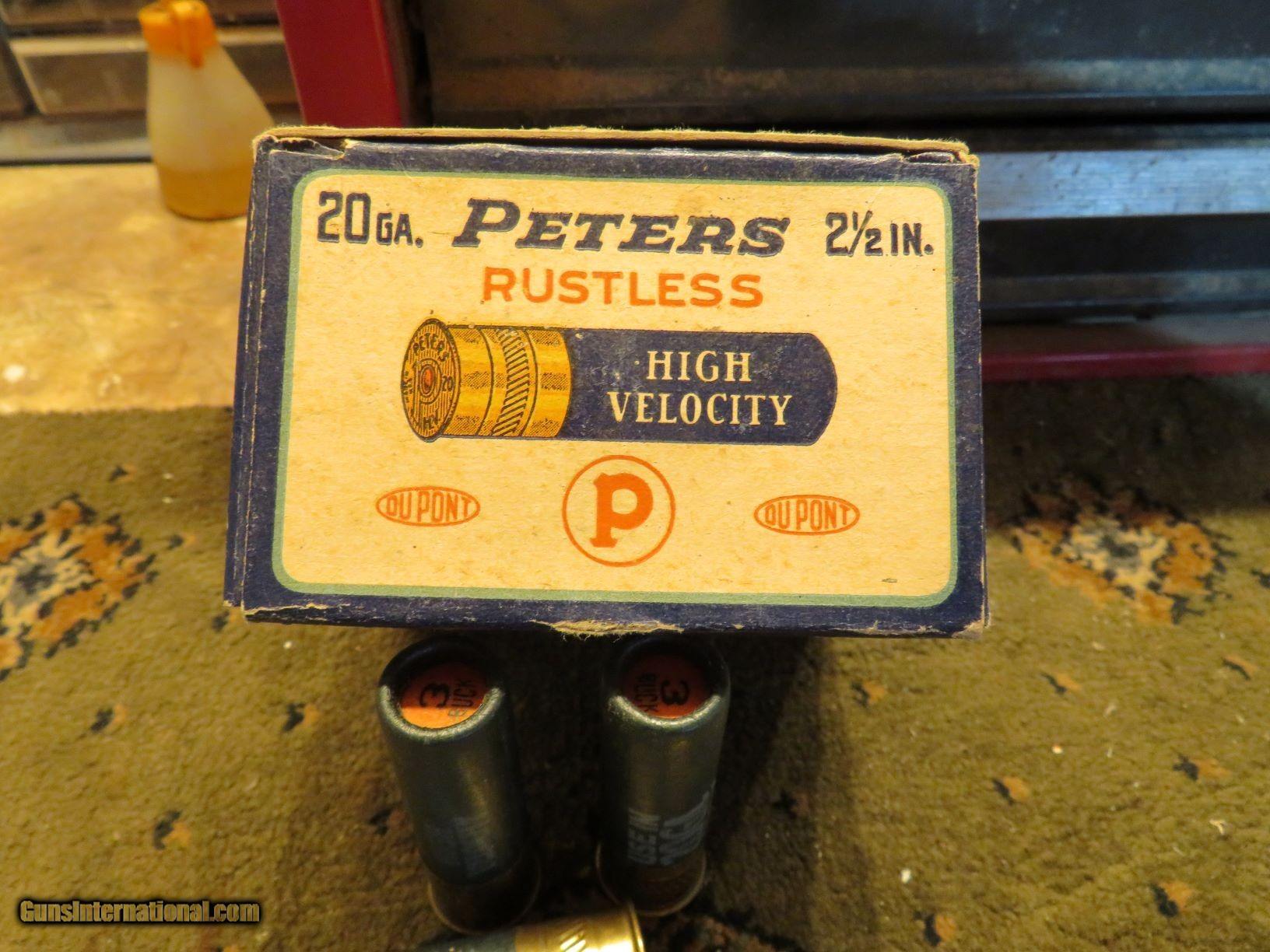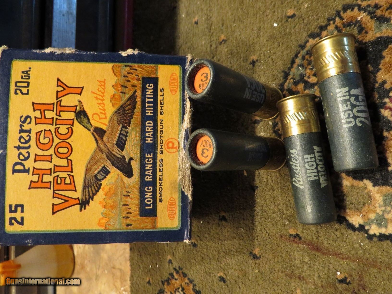 Description: Don't skip over this one. Rare 2 1/2" 20 ga duck box. That's correct 2 1/2" A couple of small shell protrusions and a repaired edge on bottom flap. Wrapped in celophane after pics to preserve it from any further weare and tear. SOLD Shotgun Gauge: 20 Gauge |