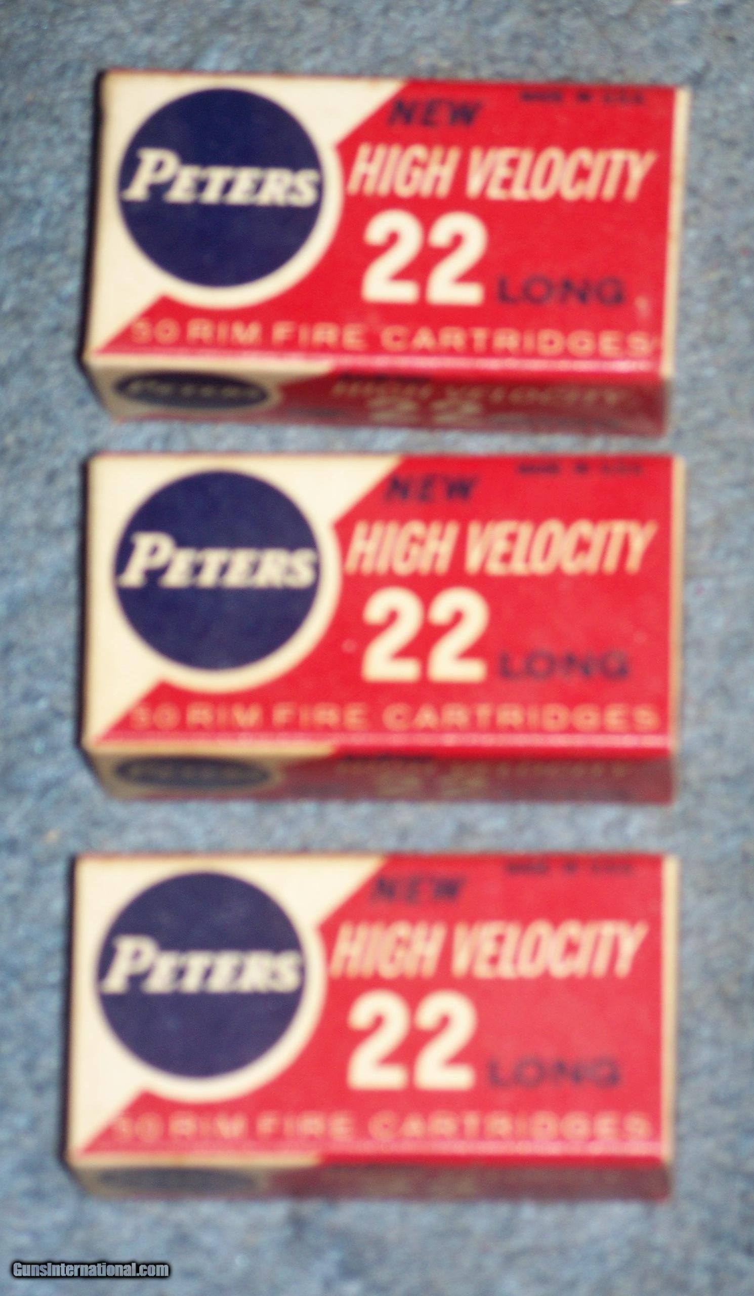 Description: Condition of boxes and ammo is mint. .22 long [ not long rifle ] round nose bullet, 3 boxes of 50 rounds per box = 150 rounds. Shipping to USA is $20. We will not ship to CA, CT, MA, IL, NY, HI, NJ, MD or any city prohibiting ammo sales. We will need a copy of your ID to process the order. Phone & fax is 860 666 2184. Joe SOLD |