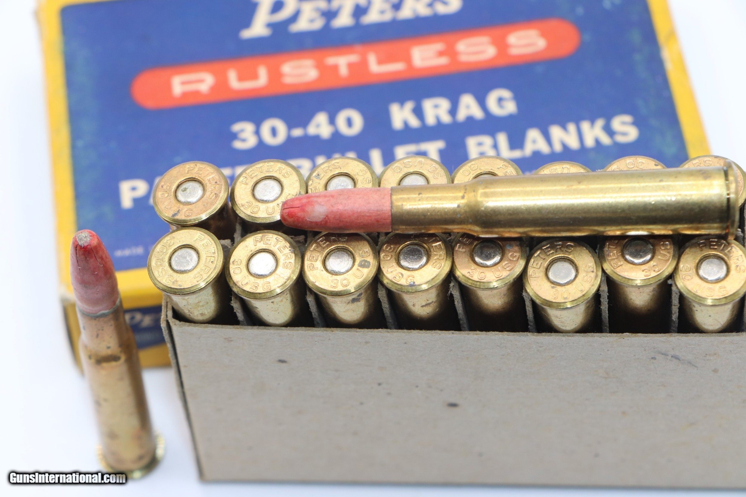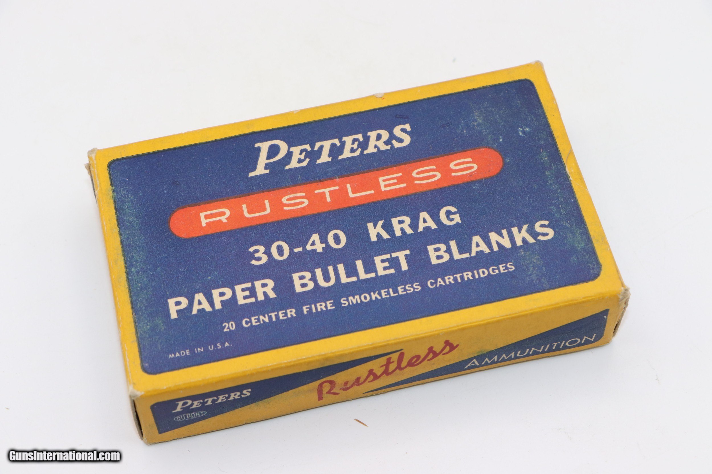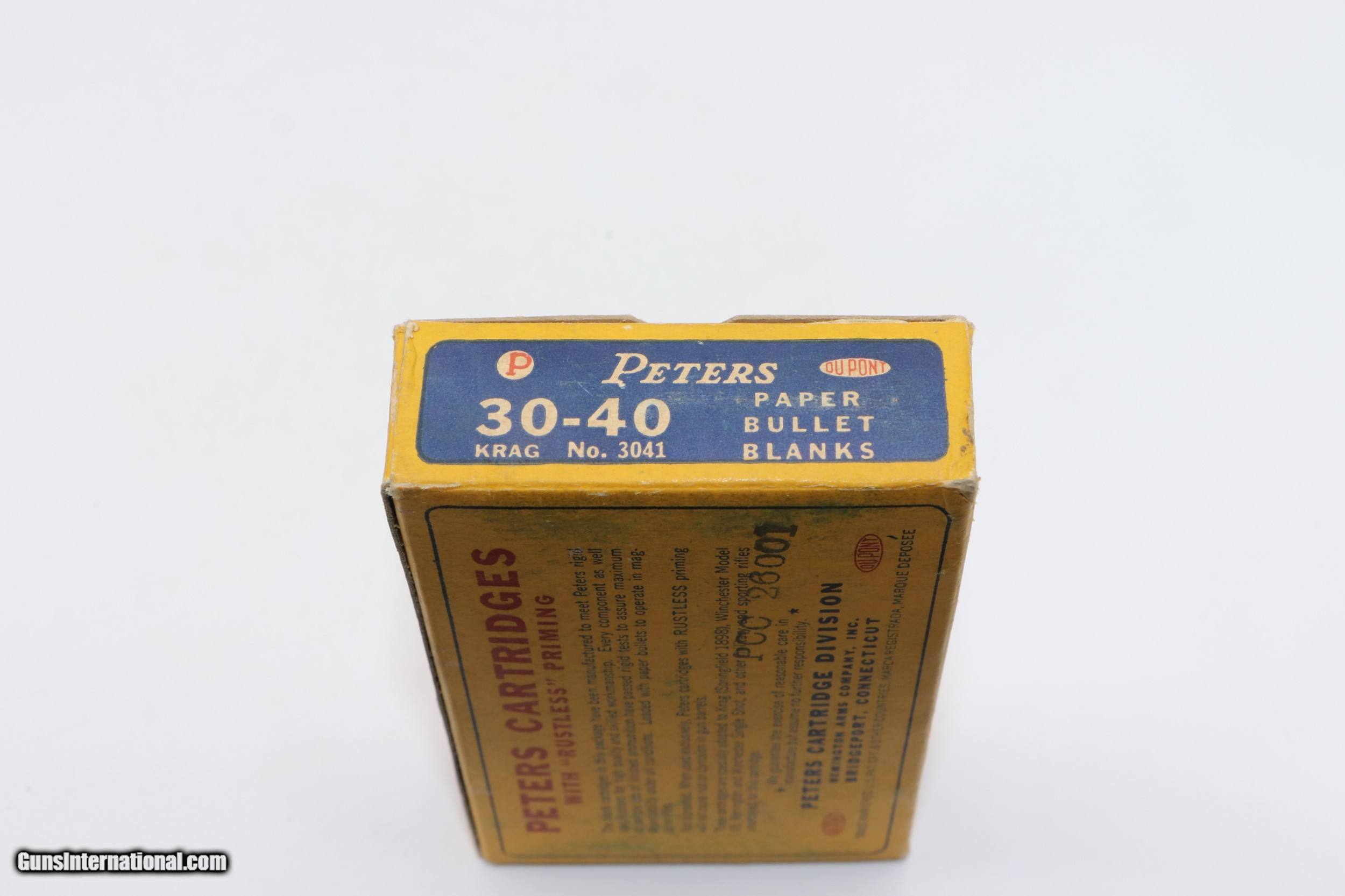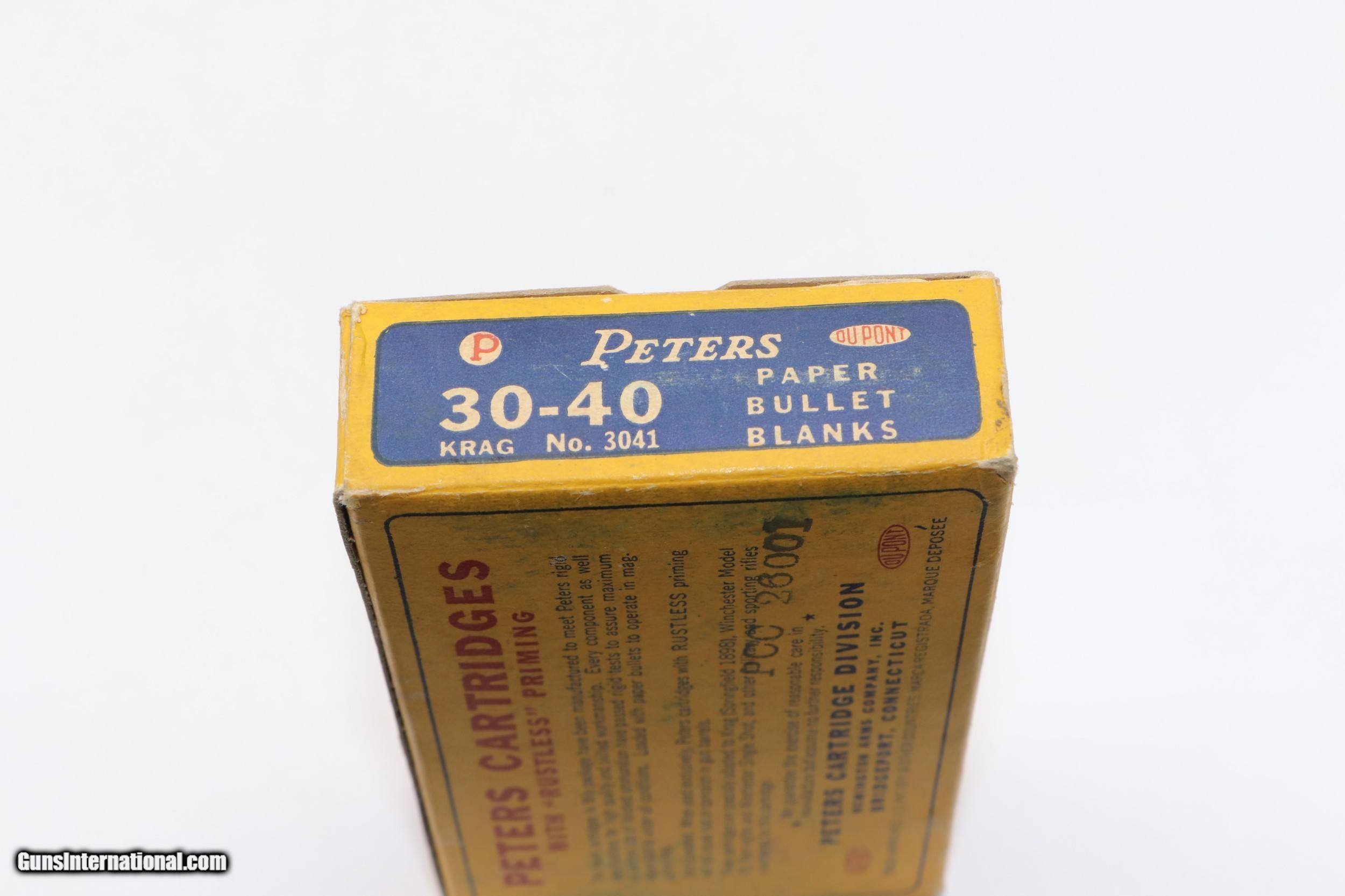 Description: Peter 30-40 Krag Paper Blanks no. 3041. Box is VG++ and Ammo VG-EXC. Add $14.50 S+H. Lower 48 Only unless prohibited by state/local regs SOLD Rifle Caliber: .30-40 Krag |