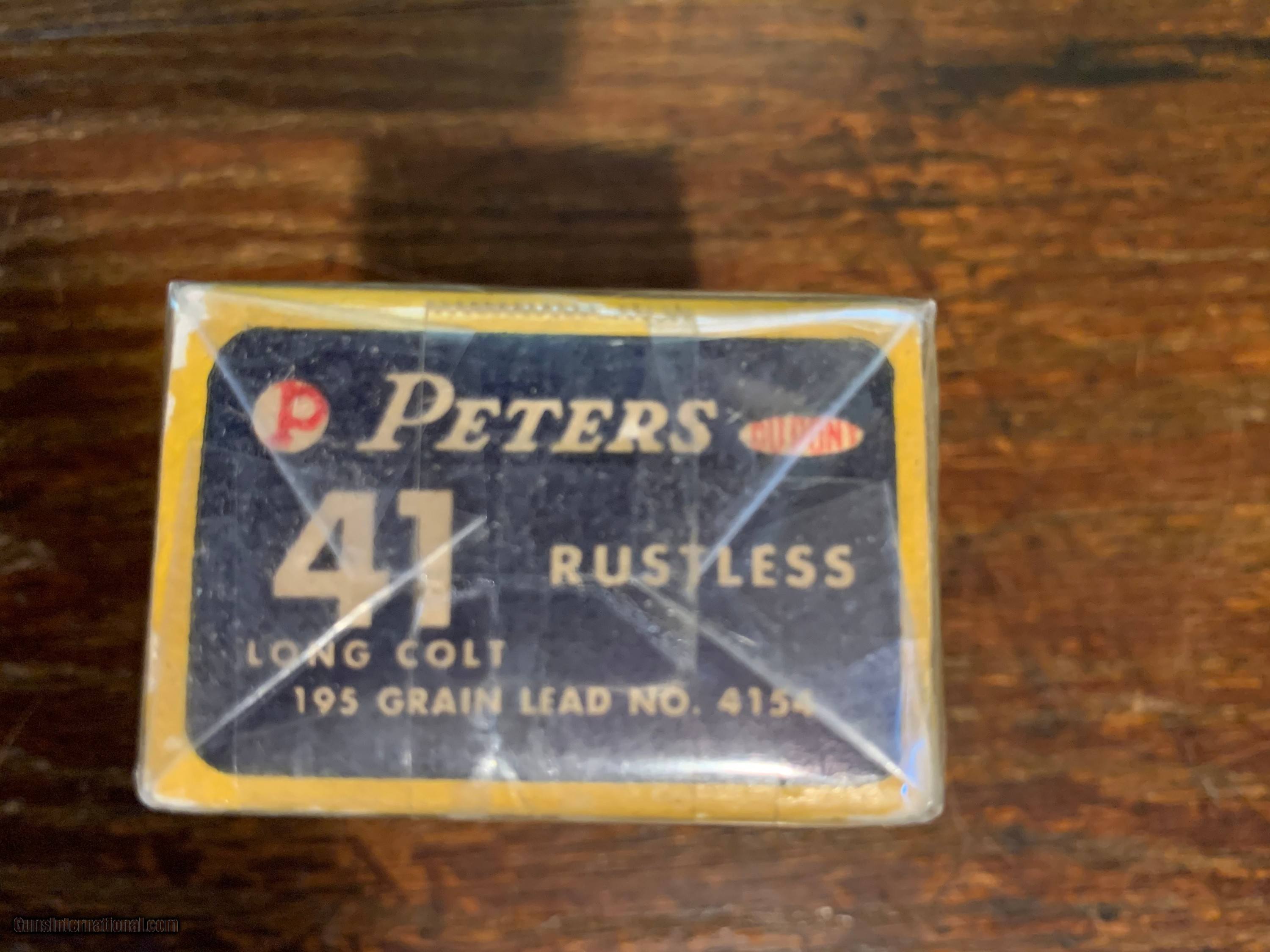 Description: Full box of Peters 41 Long Colt. SOLD Handgun Caliber: .41 Long Colt (.41 Colt, .41 LC) |