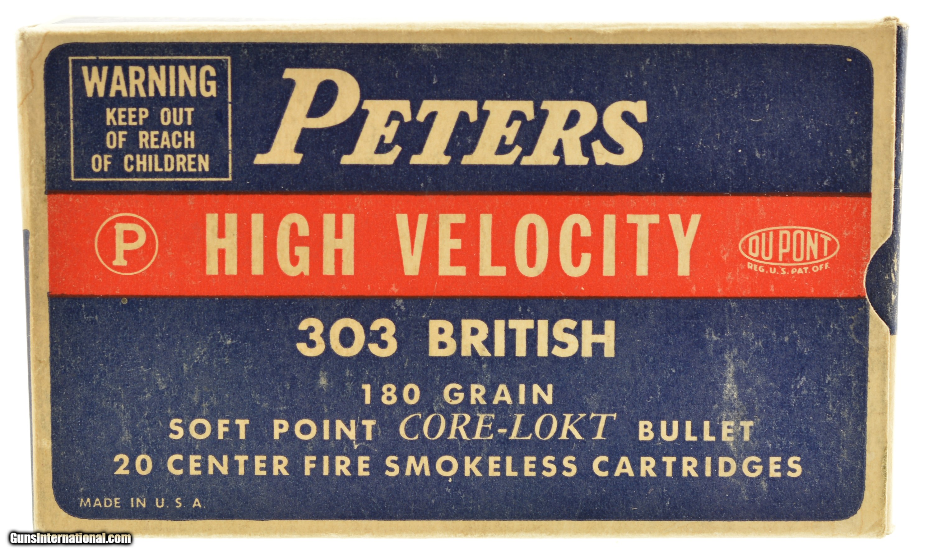 Peters High Velocity 303 British Ammo Full Box 180 Grain SP CORE-LOKT