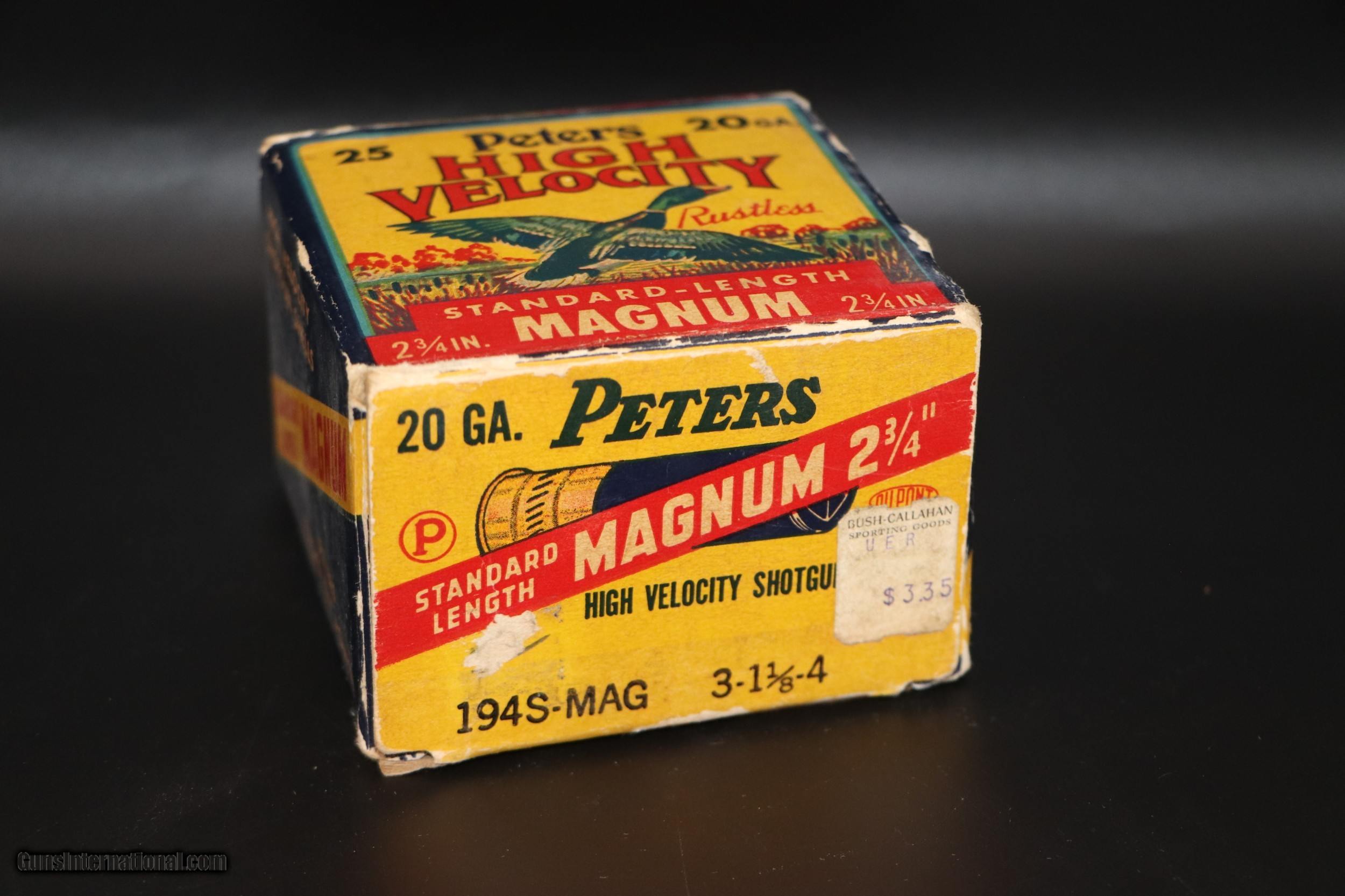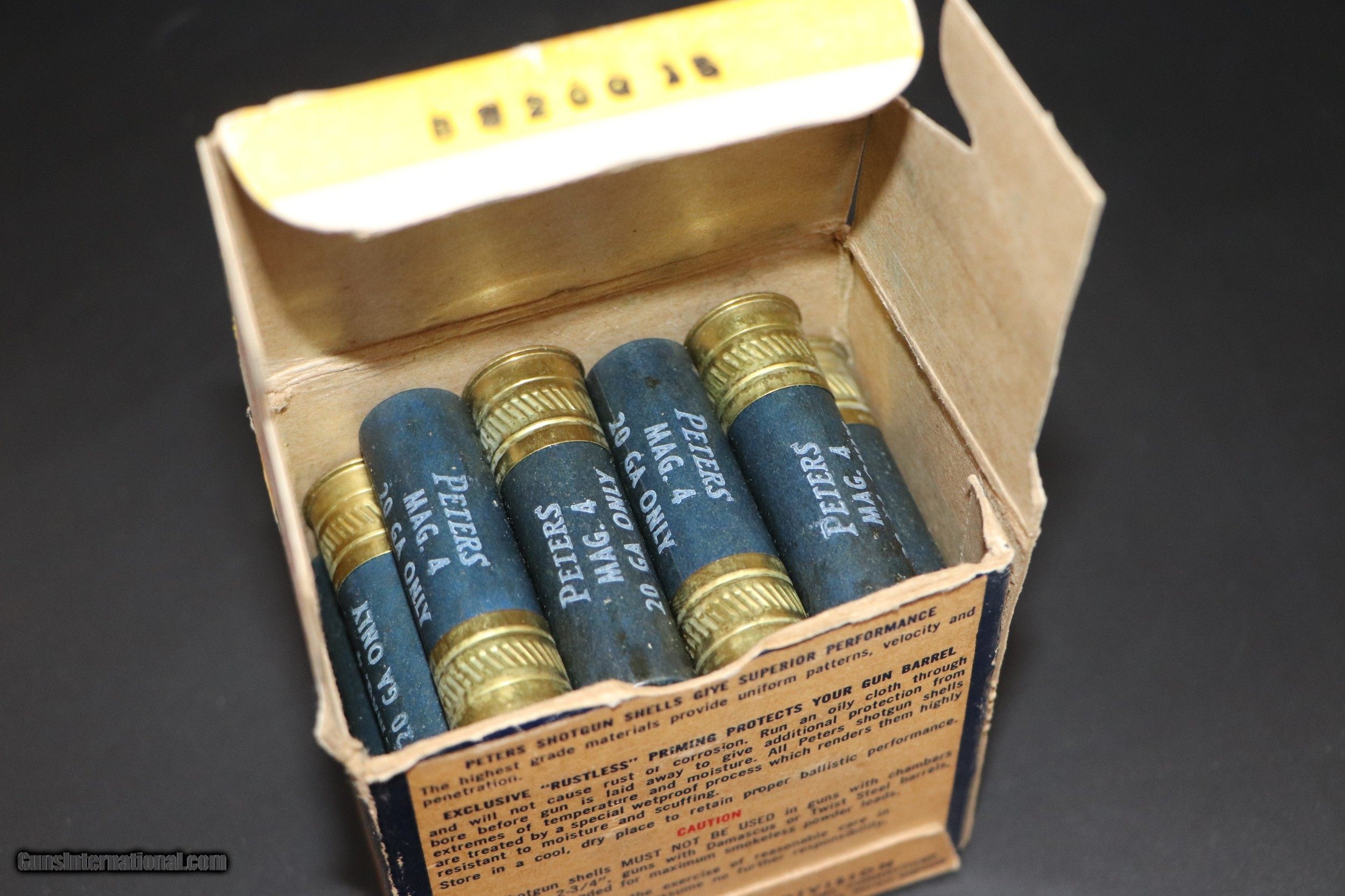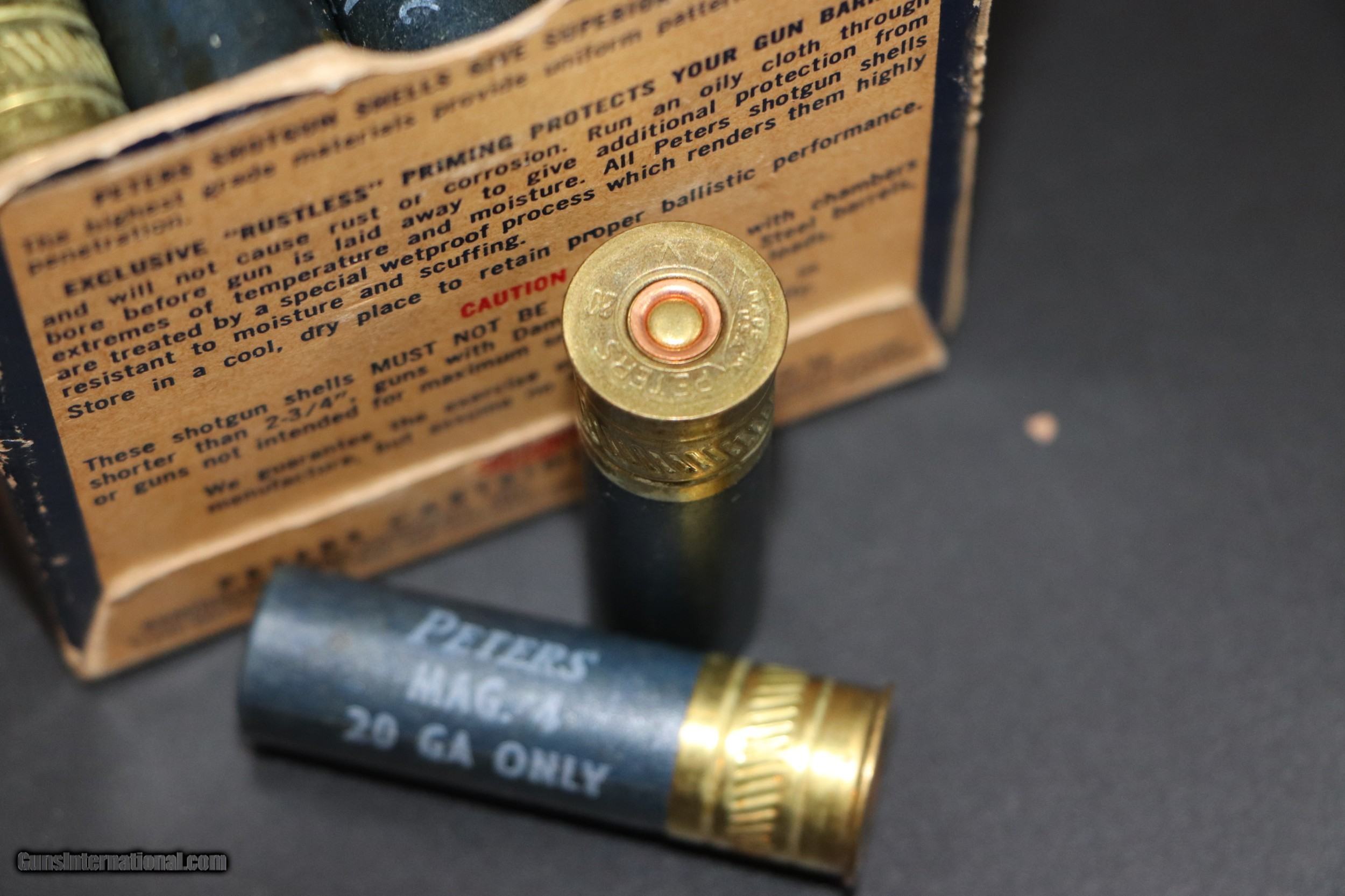 Description: VG Box of Peters HV Std Length Mag 20 Ga. Paper Shotshells. Ammo is EXC. Add 12.50 S+H. Lower 48 Only, unless prohibited by state/local regs SOLD Shotgun Gauge: 20 Gauge |