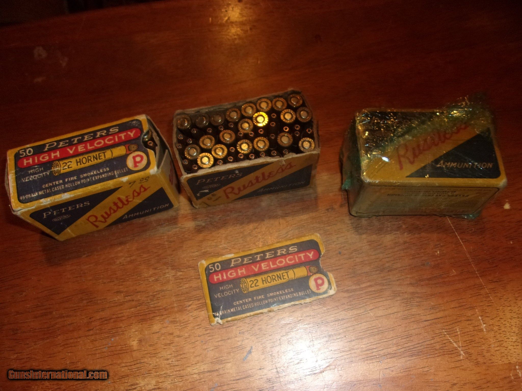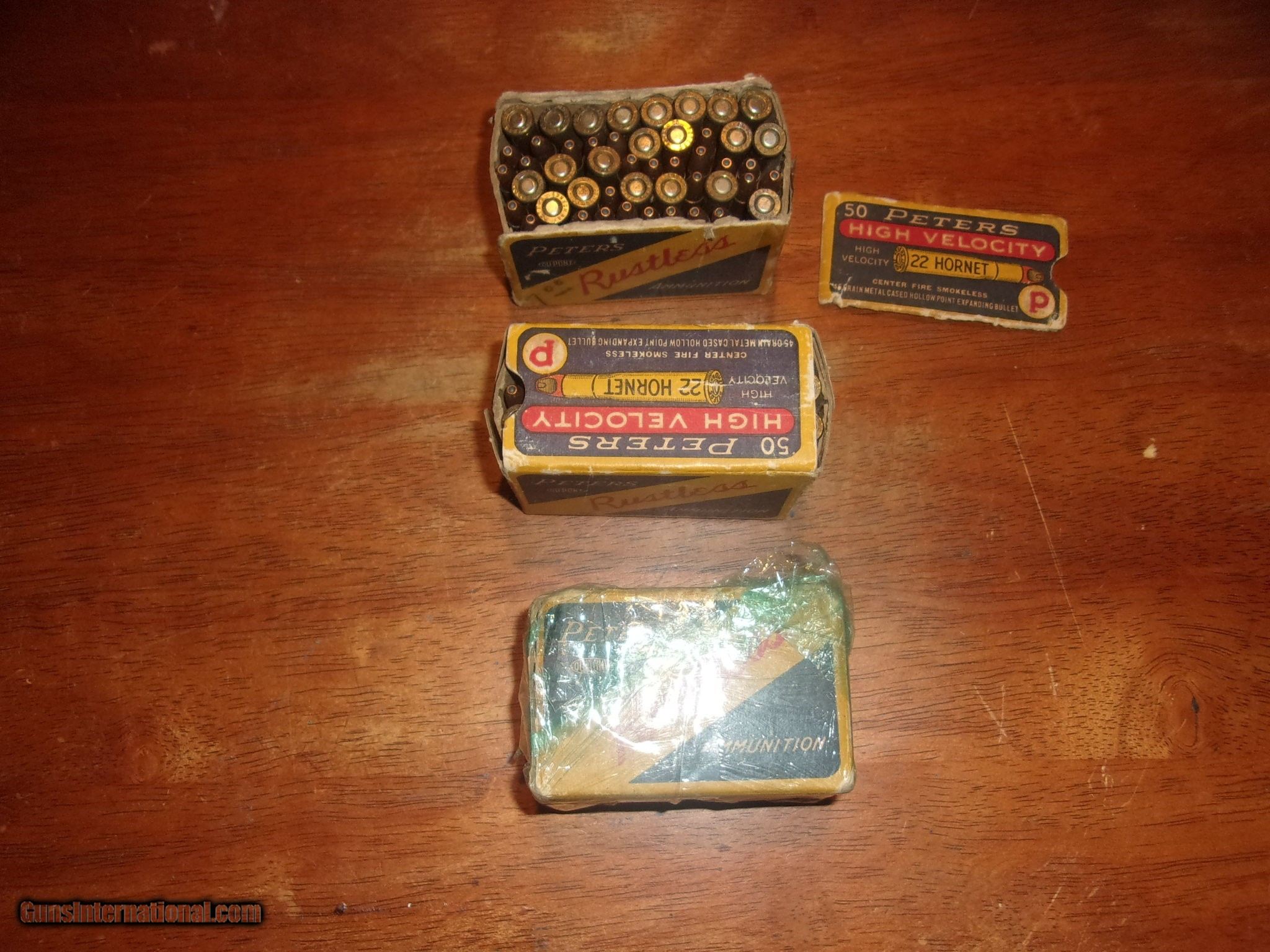Description: Three full boxes NO SALES TO CALIFORNIA or ILLINOIS KNOW YOUR STATE LAWS 22Hornet, 150 rounds of ammo. 2 boxes $60 each and one box $55. All ammo is shootable, and in good condition. Two of the boxes are in fair condition with one box in poor condition. $22 shipping for 1 box, $30 for all three boxes. Each box is in vacume sealed bags to prvevent ferther damage and lost of ammo. SOLD Rifle Caliber: .22 Hornet |