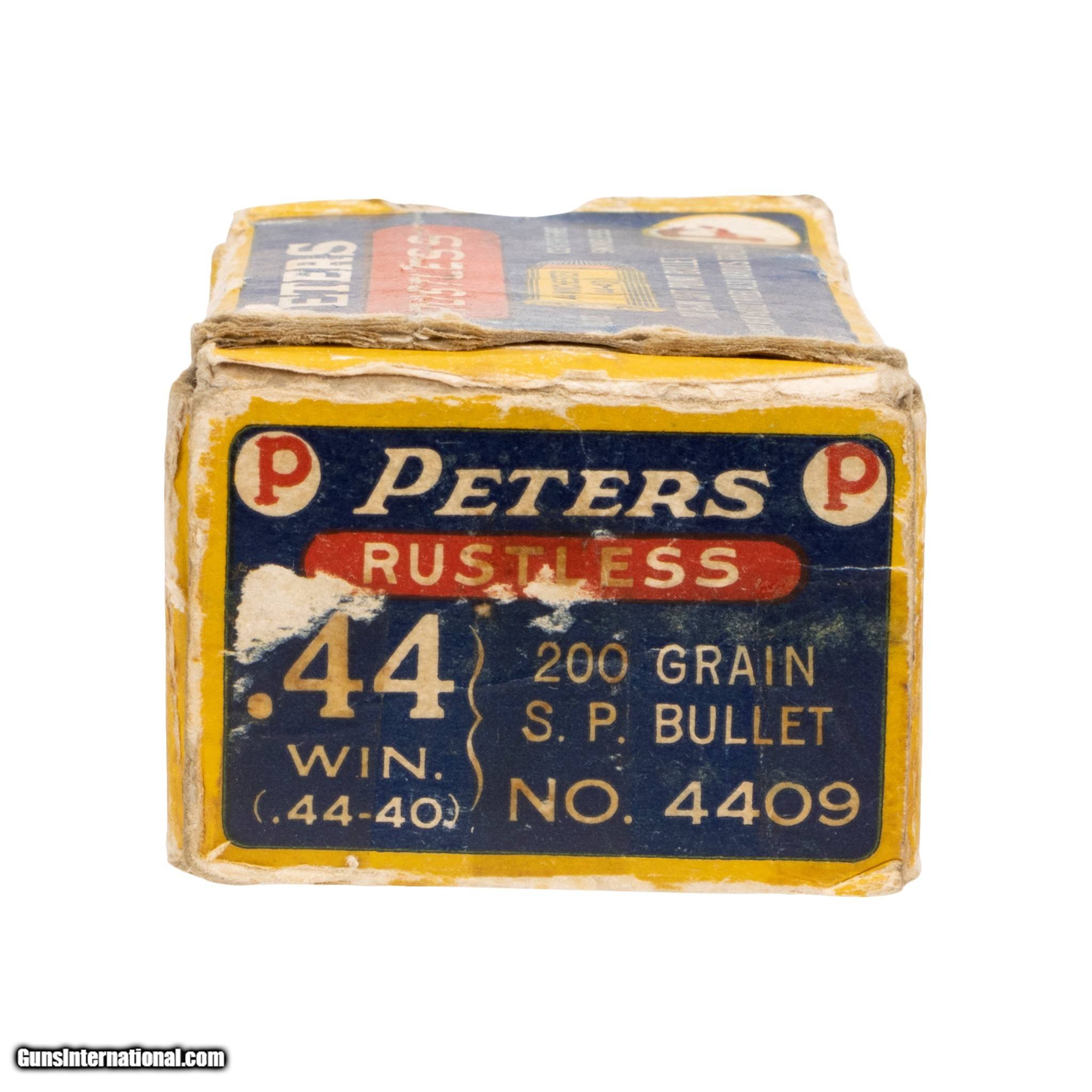 Description: Peters Rustless .44-40 Winchester 200 Grain Soft Point Center Fire Smokeless Full Box. Box is in good condition, with minimal discoloration and wear. Would compliment a vintage gon of the same caliber or would make a great addition to a hunting, sporting, or shooting collection. Family Owned & Operated Cisco’s Gallery deals in the rare, exceptional, and one-of-a-kind pieces that define the history of America and the Old West. Our pieces range from American Indian to Cowboy Western and include original items of everyday life, commerce, art, and warfare that tamed America’s frontier. Our 14,000 square foot gallery opened in 1996 in beautiful Coeur d’Alene, Idaho. Personal Service Cisco’s operates on old fashioned values – honesty and integrity, and all of our items are backed by our money back guarantee. We appreciate the opportunity to earn your business. Whether you desire assistance with a jewelry purchase, choosing a gift, identification, or even selling – we hope to be your trusted source. SOLD |