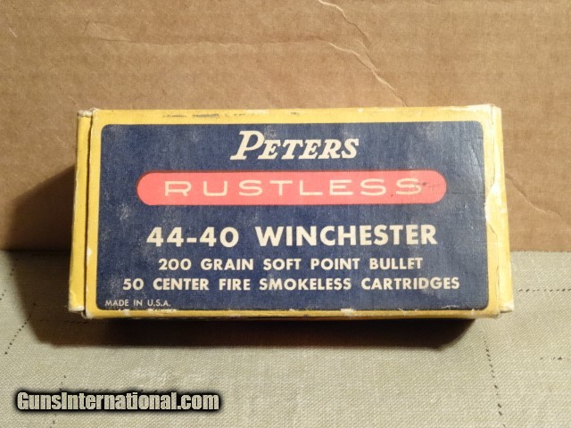 Description: Peters Rustless 44-40 Winchester 200 grain Solft Point Bullet 50 Center Fire Smokeless Cartidges Additional charge of $15.00 for shipping. For further details it is best to call our office at 716-941-3946. SOLD |