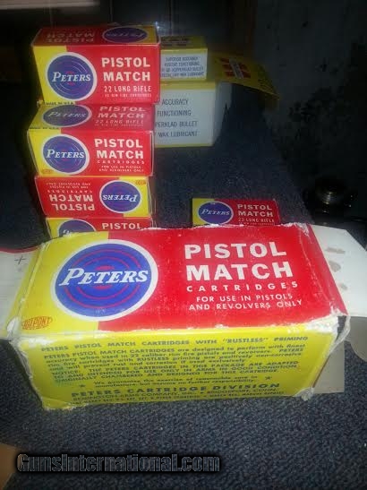Description: Peters 22 LR Match. Nine Excellent Boxes. One not so nice partial $95.00 SOLD |