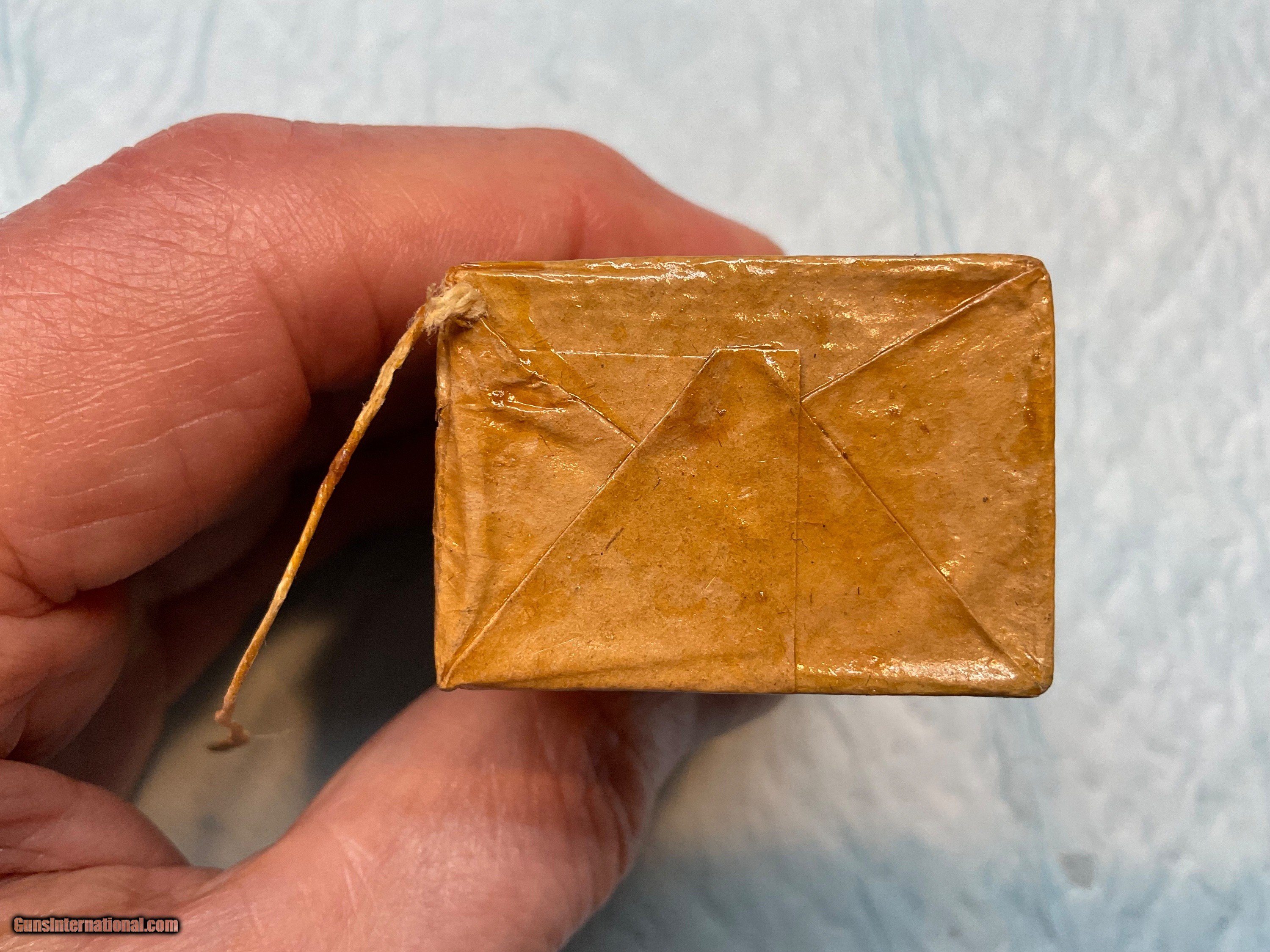 Description: Rare vintage, unopened box of 12 Frankford Arsenal .45 Calibre revolver ball cartridges, manufactured in 1875. These 1875 boxes are much rarer than the later 1878 boxes. To find another 1875 unopened box in this condition would be rare. I would rate this box as excellent. These cartridges will fit both the Colt 45 and the S&W Schofield revolvers. No sales to California or any other state or local jurisdiction that requires ammo to be purchased through an FFL dealer. Sales only to the 48 contiguous States. No sales to Alaska or Hawaii. NO foreign sales. Payment by USPS MONEY ORDER, Certified Check, or Personal Check. I will hold the ammo until a Personal Check clears my bank. Please look closely at the pictures and ask questions. I do not accept returns unless not as described. Price does not include shipping. SOLD Handgun Caliber: .45 Schofield (.45 S&W Schofield, .45 S&W) |