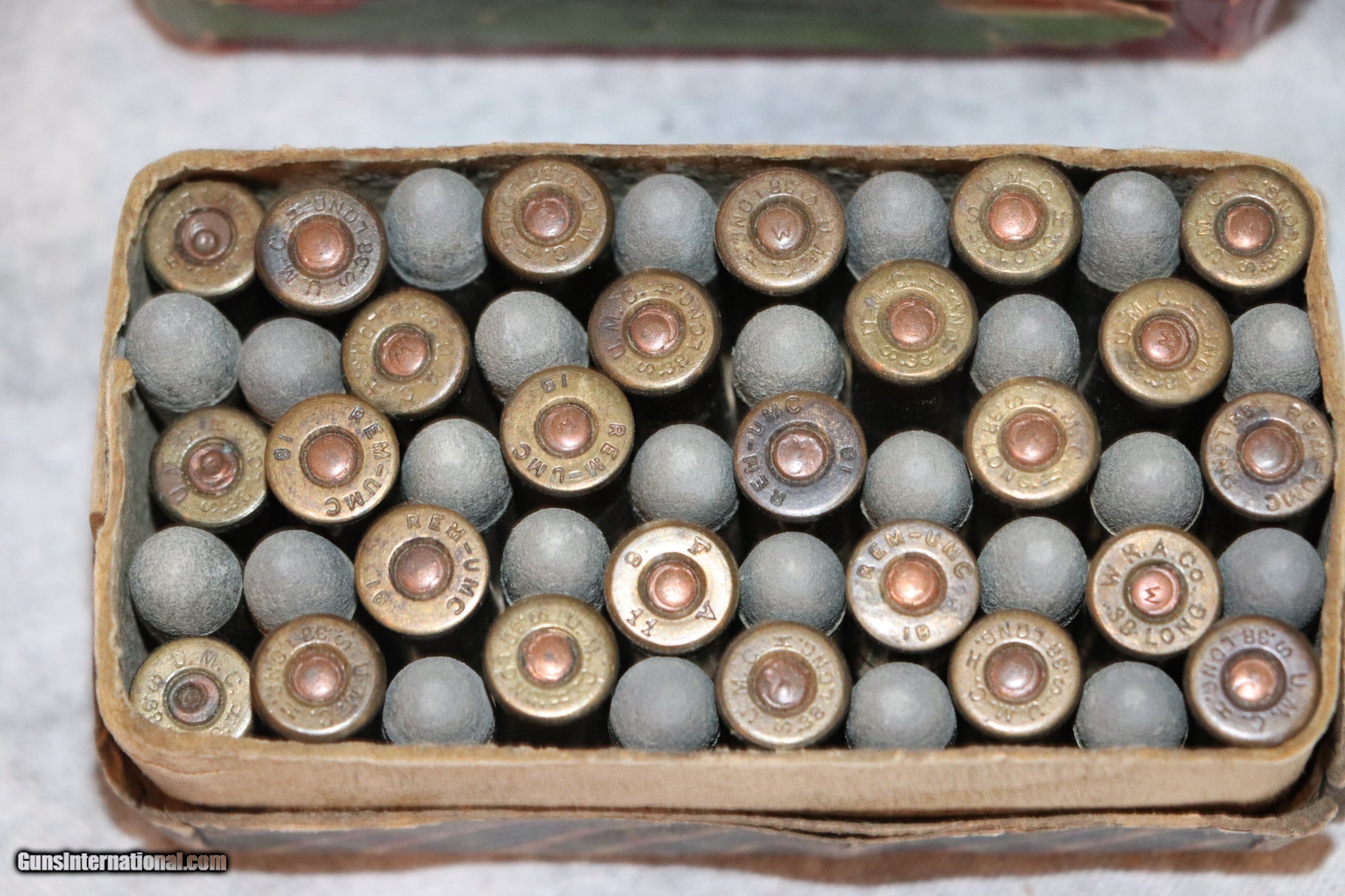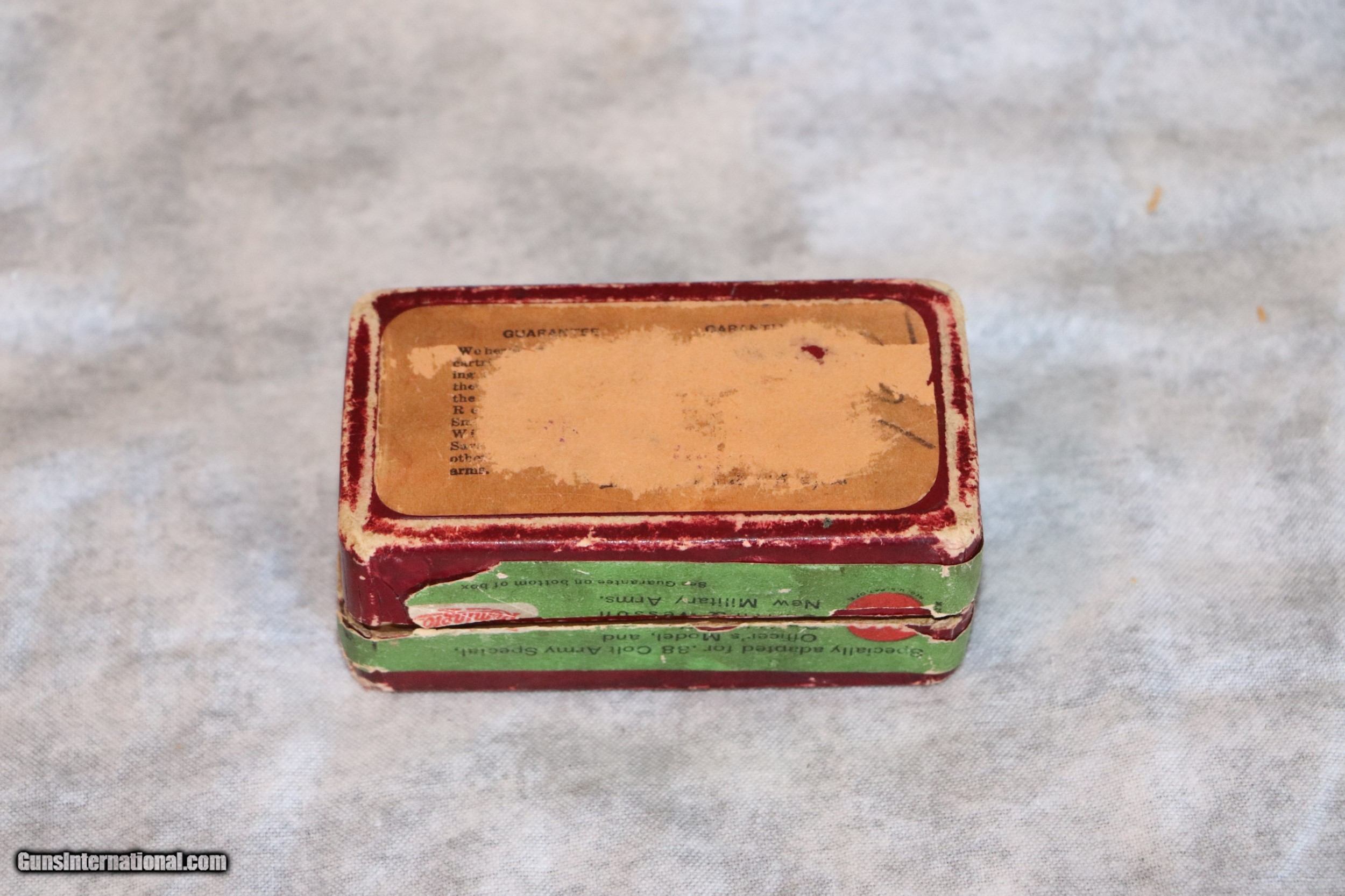 Description: REM UMC Colt Special in VG Condition - 37 Correct Cartridges in Exc Condition REM UMC .38 Long Colt Smokeless in Good Condition - 47 Cartridges, 3 spent rounds. About 30 REM-UMC "18", about 15 UMC Long "S" "H", about 4 WRA Co. .38 Long "W" and 1 AFS "11" Add $18 for S+H SOLD |