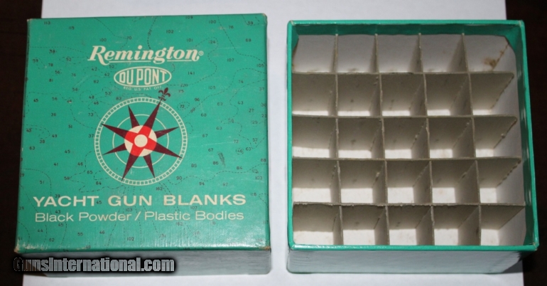 Description: Empty Remington 10ga Yacht Gun Blanks 2 piece box. Used for starting cannon. Excellent condition on all sides. Hard to find unique Remington box. Sale price includes FREE shipping in the Cont. US. Please see my other items for more vintage shotgun accessories. SOLD |