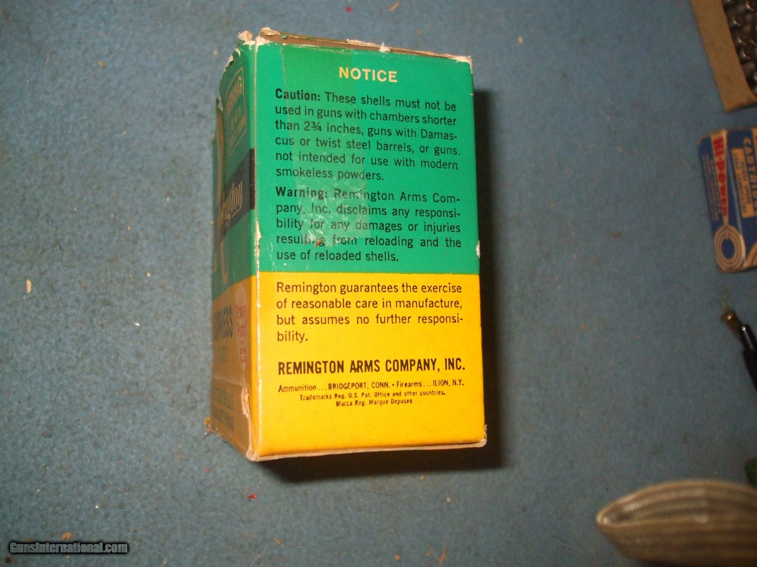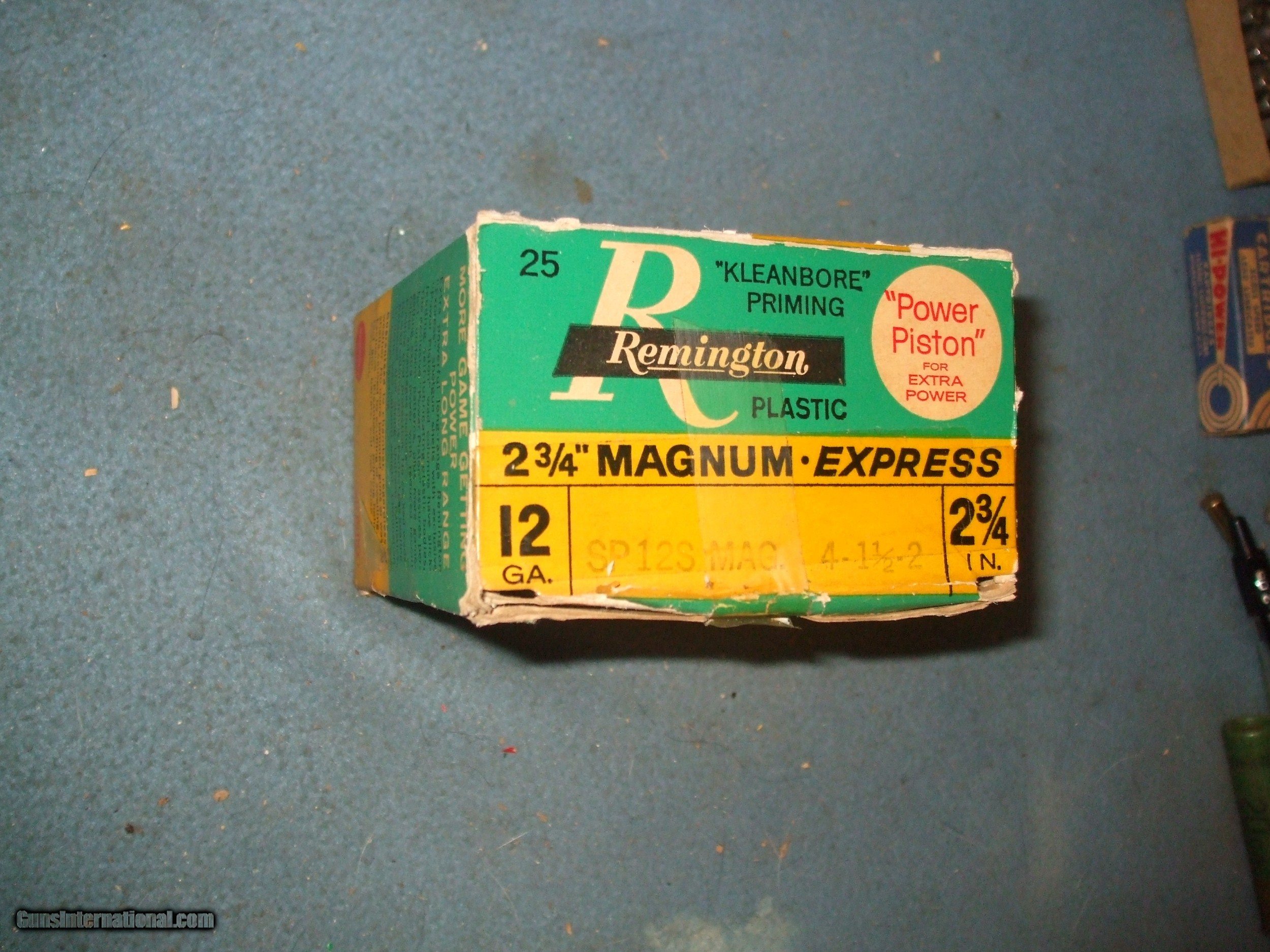 Description: Remington 12ga 23/4" Magnum plastic shell spun crimp. Not full box 22rds. Remingtons first plastic shell and first shell with one piece plastic wad the "Power Piston".Box fair to good shells excellent. Please note cannot ship to CA, MA, NJ, IL or any other restricted areas. I am loacted in Delaware and can deliver locally. Price reduction!!!!! SOLD Shotgun Gauge: 12 Gauge |