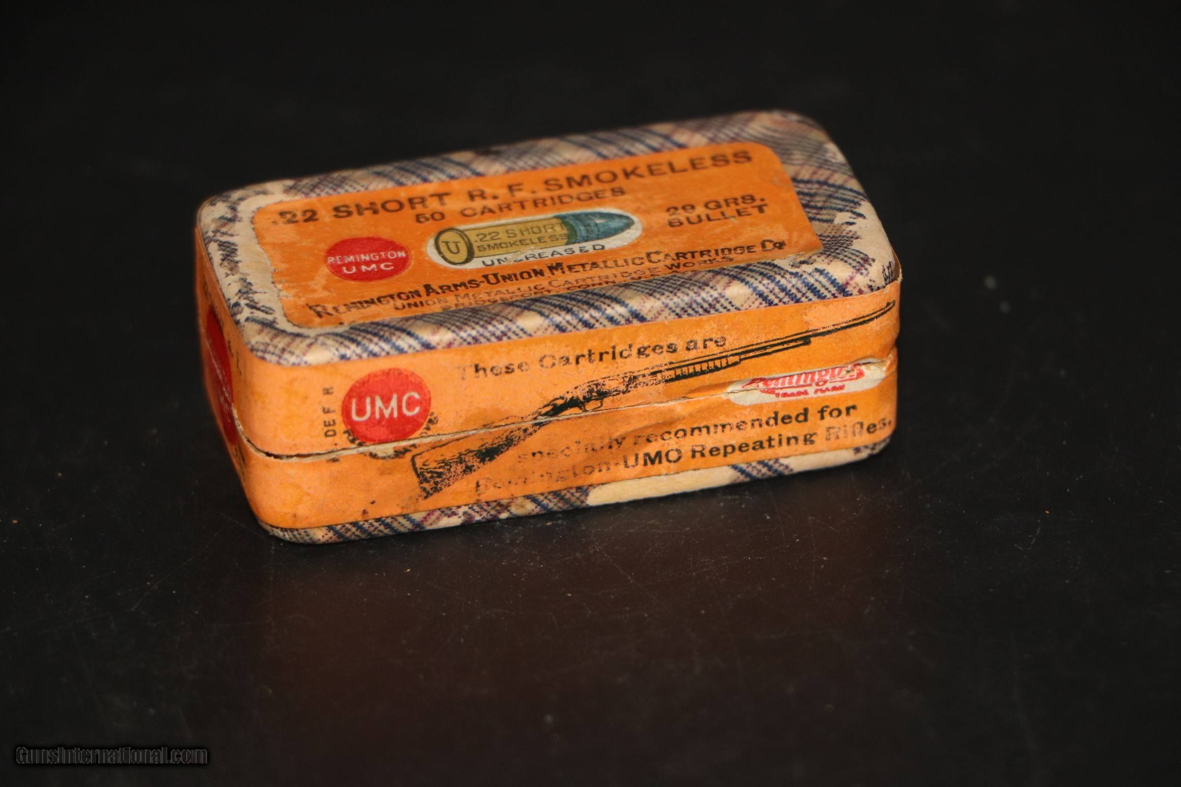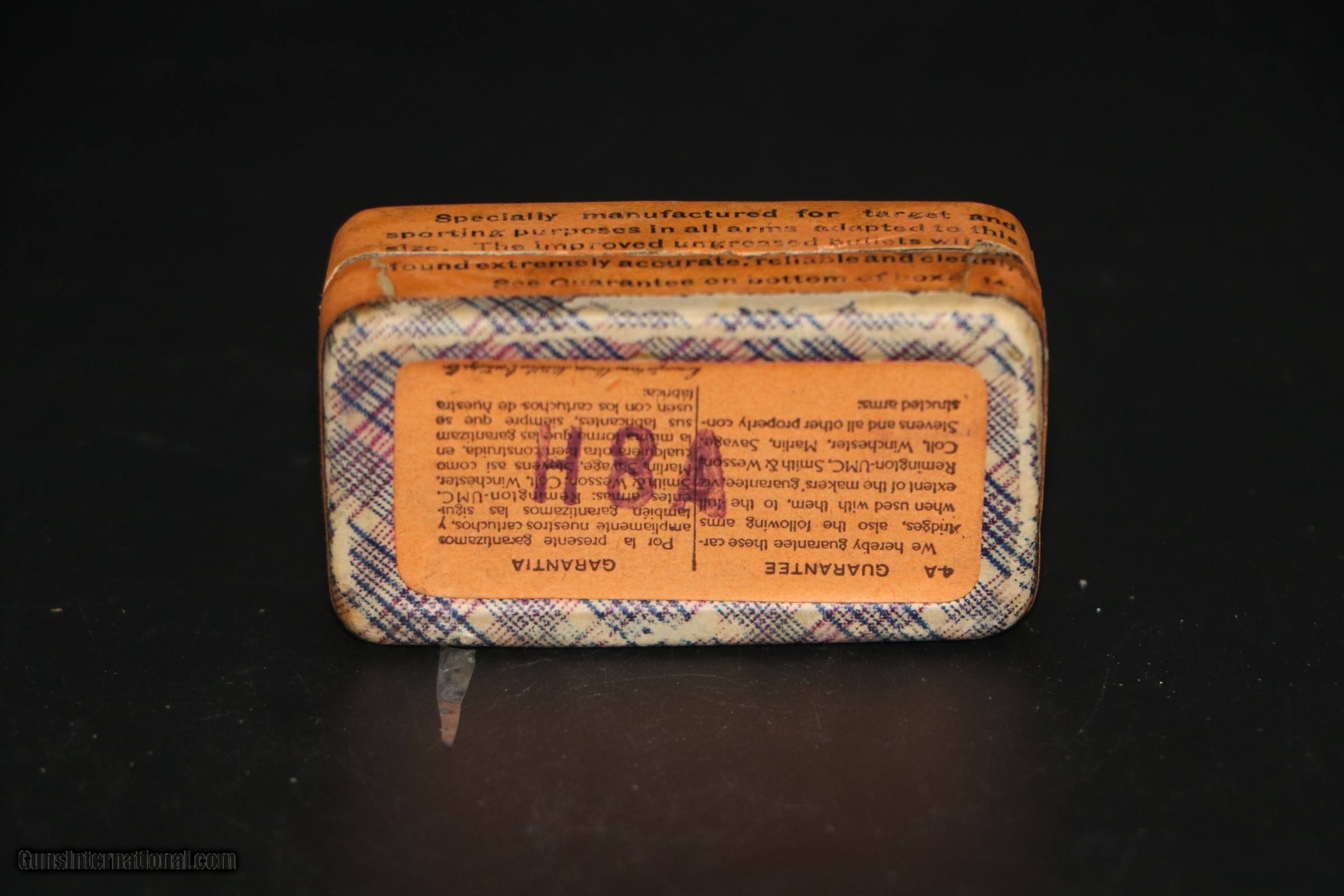 Description: This colorful box is one of the earliest of the "Combined Logo" series, early 1910s. The box pictures a Remington M12 Rifle on the side label, is excellent with excellent ammo. Box is not sealed. Add $12.50 S+H SOLD Rifle Caliber: .22 Short |