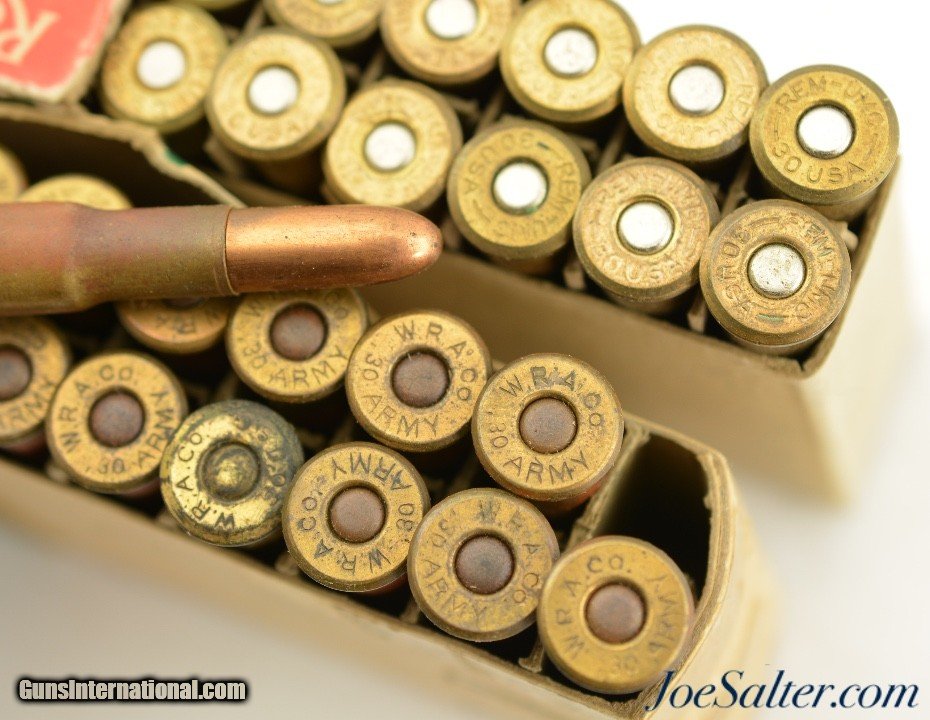 Description: This set contains 1 full box of 20, Remington 30-40 Krag 180gr. CORE-LOKT ammunition in very good condition with the box being in good condition, visible wear but good color. The other box is filled with older Winchester WRA Stamped 30 Army FMJ with that box being of fair condition.; Price: $115.00 Contact Seller |