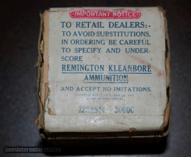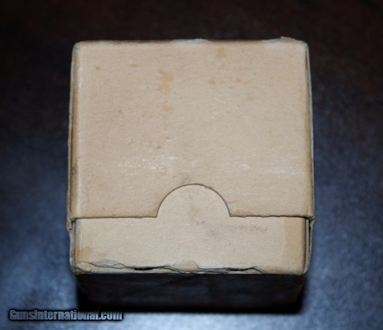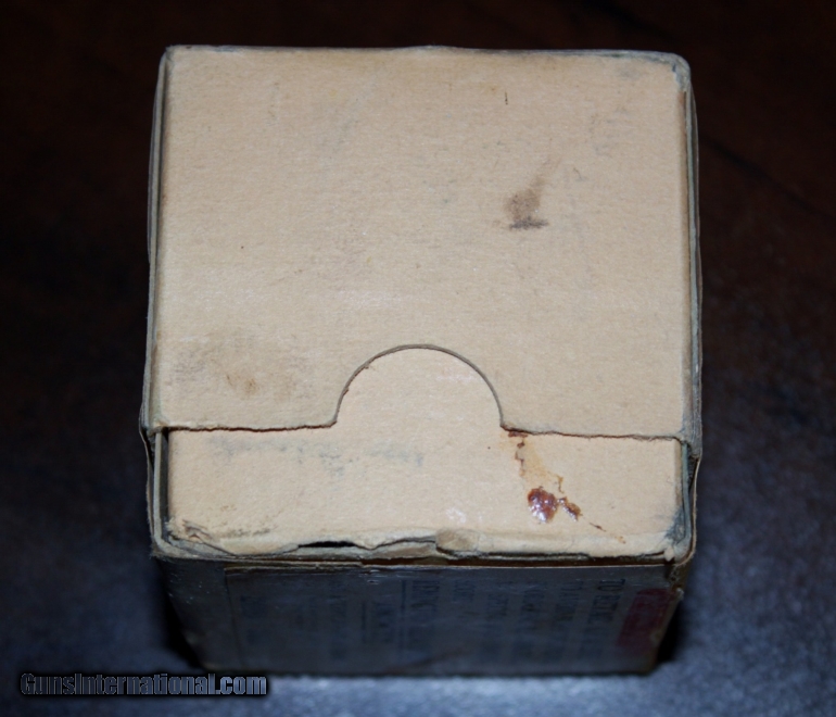 Description: SOLD!! Vintage Remington 410 Nitro Express 2 piece box that is factory sealed. 2.5" shells in #7.5 shot. Labels are very good. Top is excellent and the bottom has seam splits. Please see the pictures for accurate condition and description. See my other listings for more vintage ammo. Sale price includes ORMD shipping in the Cont. US. SOLD |