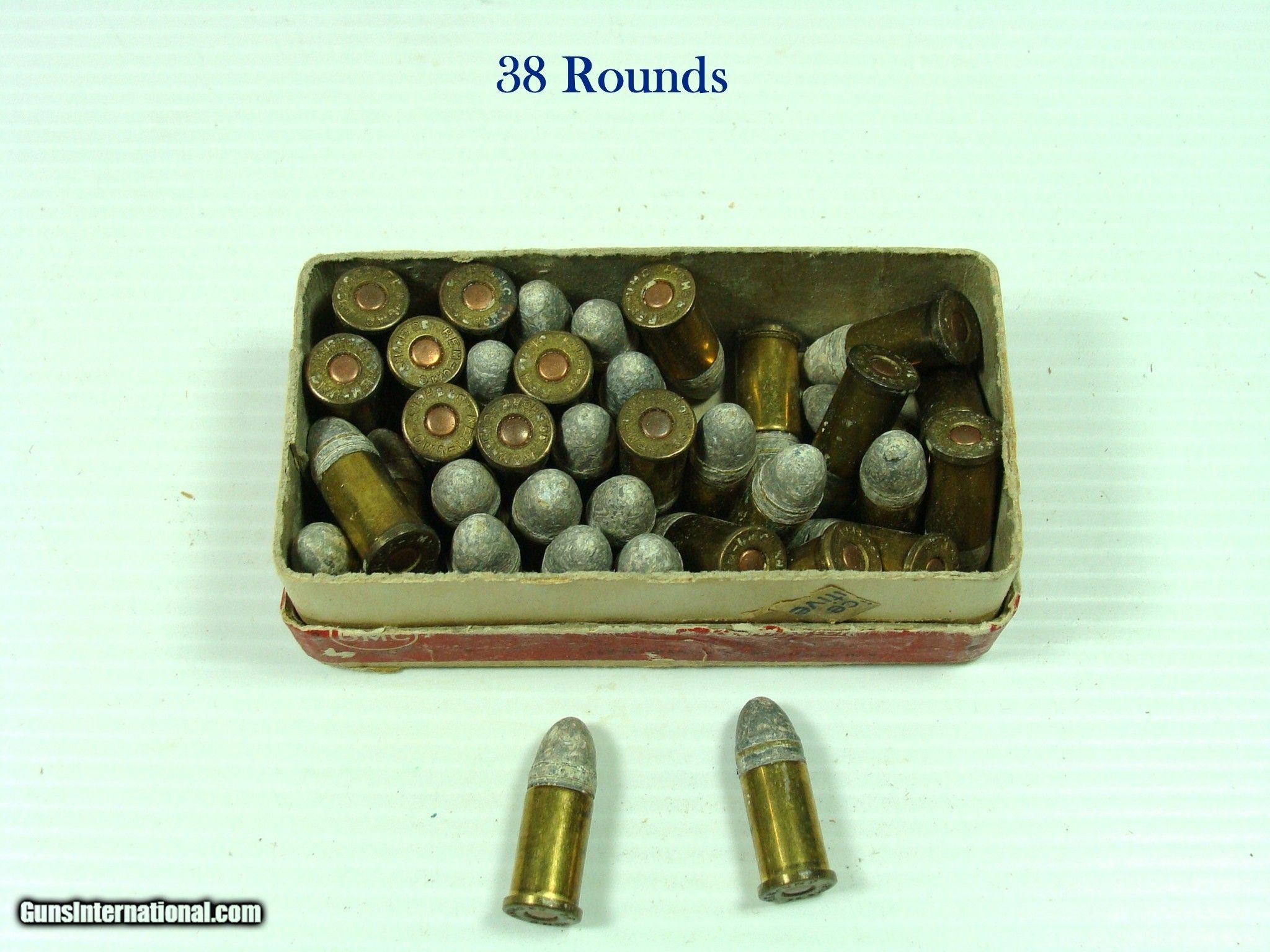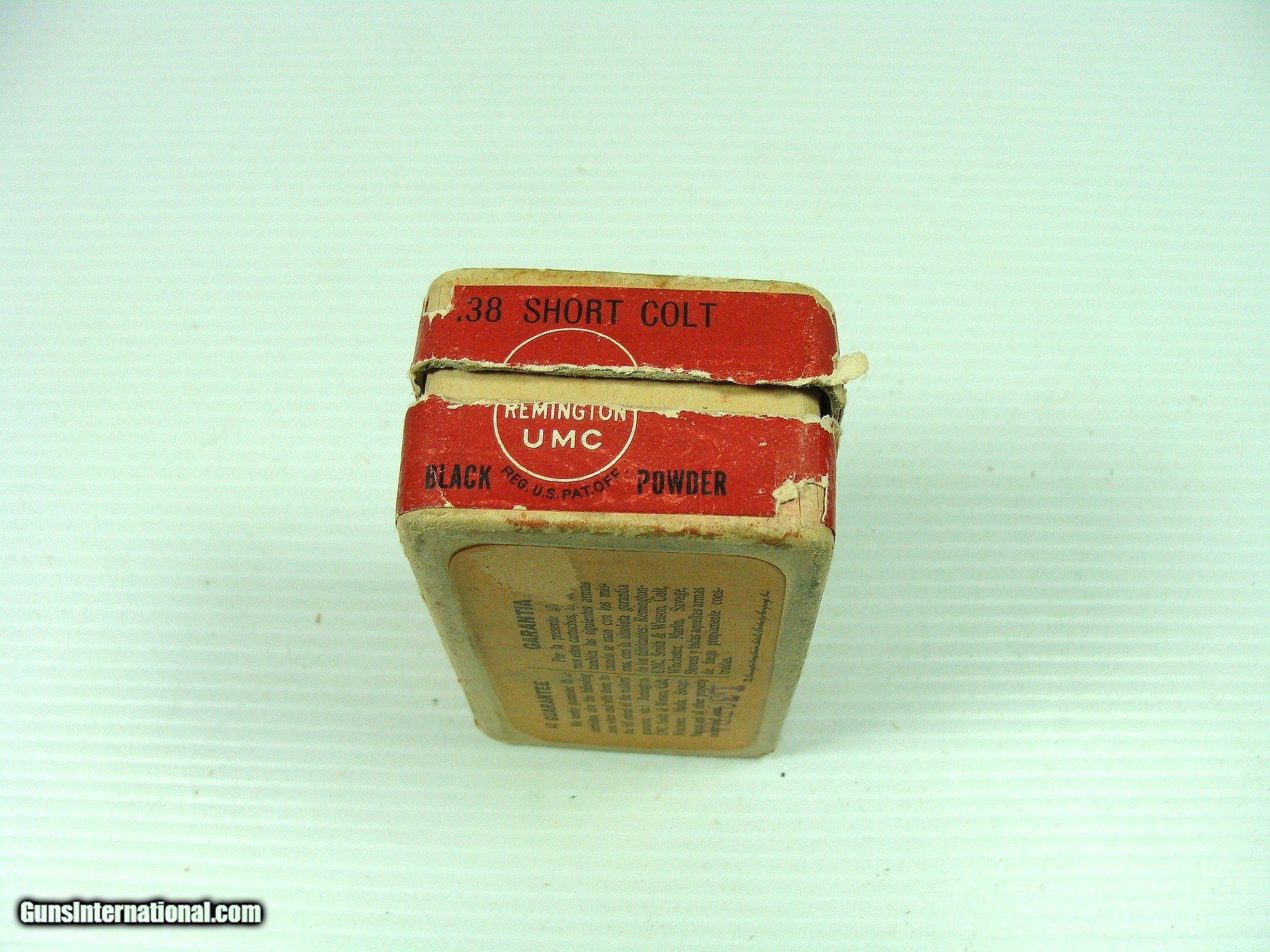 Description: REMINGTON ARMS UNION METALLIC CARTRIDGE COMPANY .38 SHORT COLT. The box is complete but worn. The .38 Short Cartridges are loaded with Black Powder. The box contains 38 rounds. There is light oxidation on the bullets, but the cases are clean. Great for shooting that Pre-1898 pistol you have. Just have it checked by a Gunsmith first. This box dates from approximately 1911-1920. ~~~~~~~~~~~~~~~~~~~~~~~~~~~~~~~~~~~~~~~~~~~~~~~~~~~~~~~~~~~~~~~~~~~~~~~~~~~~~~~~~~~~~~~~~~~~~~~~~~~~~~~~~~~~~~~~~~~~~~~~~~~~~~~~~~~~~~~~~~ No guarantee or warranty is expressed or implied as to the usability of the items for its original purpose. The buyer certifies that he or she is of lawful age and is not prevented by any law from the purchase or possession of these items. The buyer is responsible for knowing, understanding and obeying all International, Federal, State and Local laws concerning the purchase and possession of these items. Please have your firearm checked by a competent gunsmith before firing with antique ammunition. Thanks for your interest. Offers Accepted SOLD |