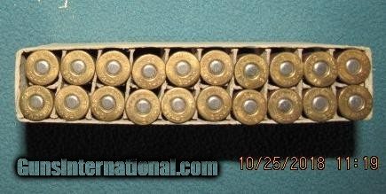 Description: Popular and desirable Remington "Dogbone" box full of the original, unfired rounds for 32-40 Winchester, Marlin, and Savage rifles. Rounds are in great shap with matching headstamps and no corrosion. Box is very good and solid, with clear and undamaged labels except for a couple of lines of marker and one spot about the size of a quarter where it is peeled away, possibly had a price sticker there at one point. Payment via money order, bank check or PayPal. Ships to US addresses only via UPS Ground. Buyer pays actual shipping cost plus $3 for packing materials. Will combine shipping for multiple ammo boxes purchased so check my other listings. Please be sure this is legal for you to purchase and own; must have copy of photo ID included with payment. Always interested in single pieces or collections of Winchester, Marlin, Savage, Remington and Colt firearms, old coins and ammunition, books on the Old West and firearms. Now on theat cnycollectibles. SOLD |