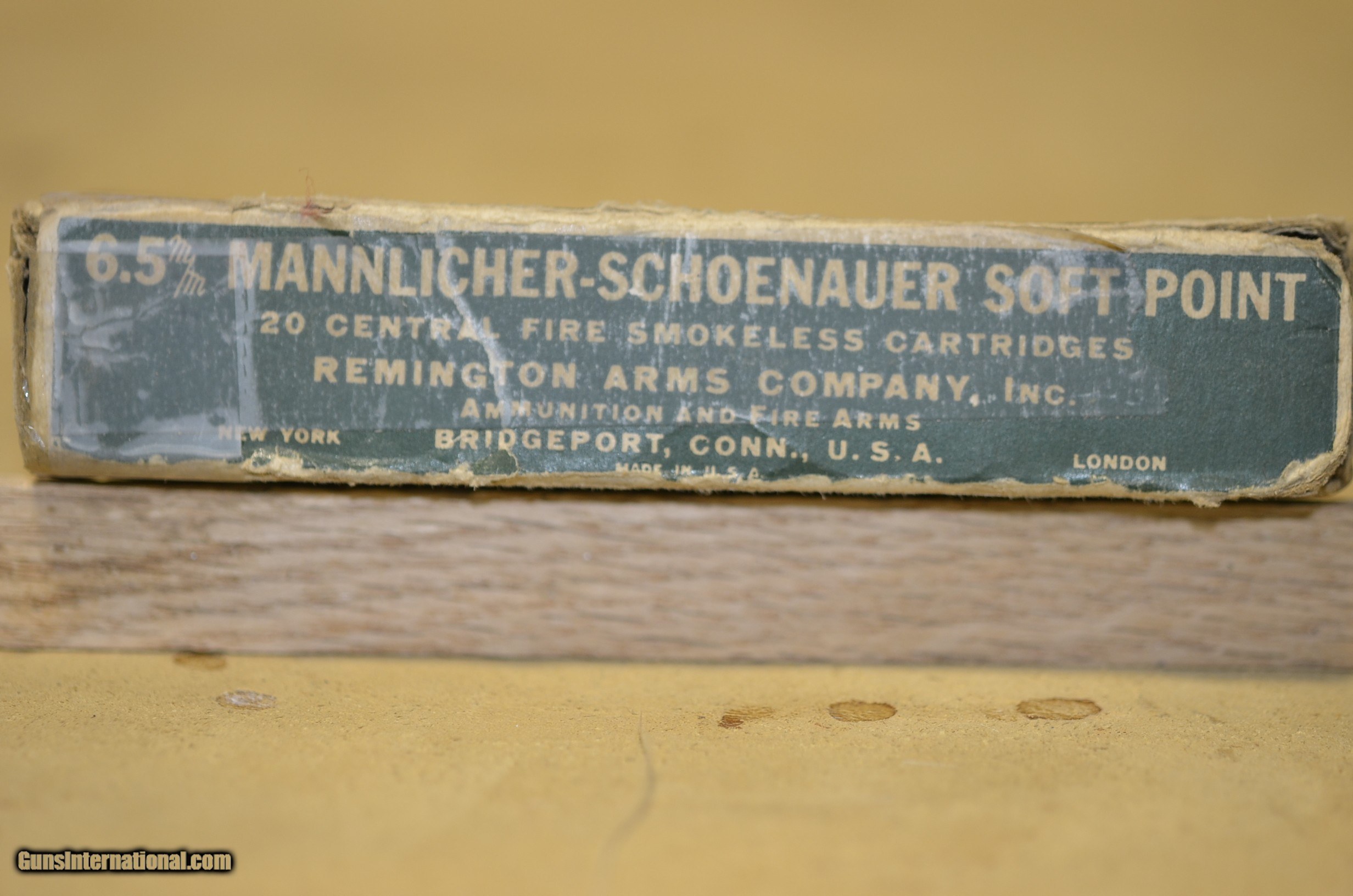 Description: Offering One box of highly collectable Remington "Dogbone" ammo in 6.5 Mannlicher Schoenauer. 20 rounds of reloaded ammo For Display only. Ask $35.00 plus $8.50 ship. Please continue veiwing my site as many new items will be listed SOLD Rifle Caliber: 6.5x54mm Mannlicher-Schoenauer |