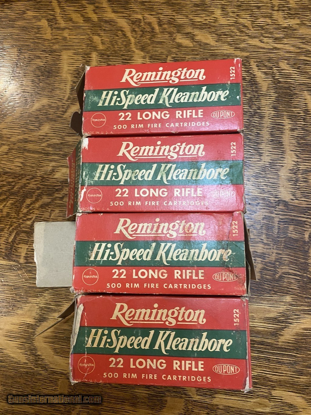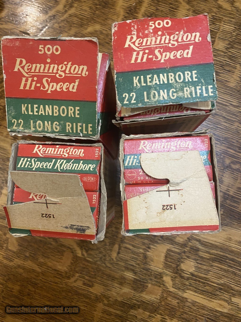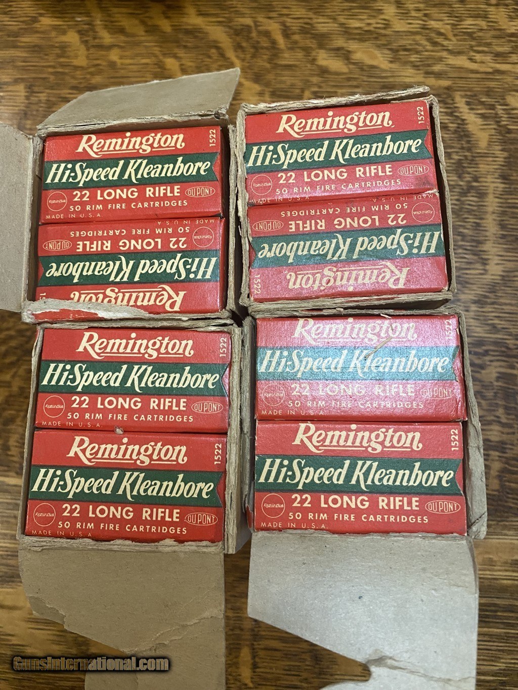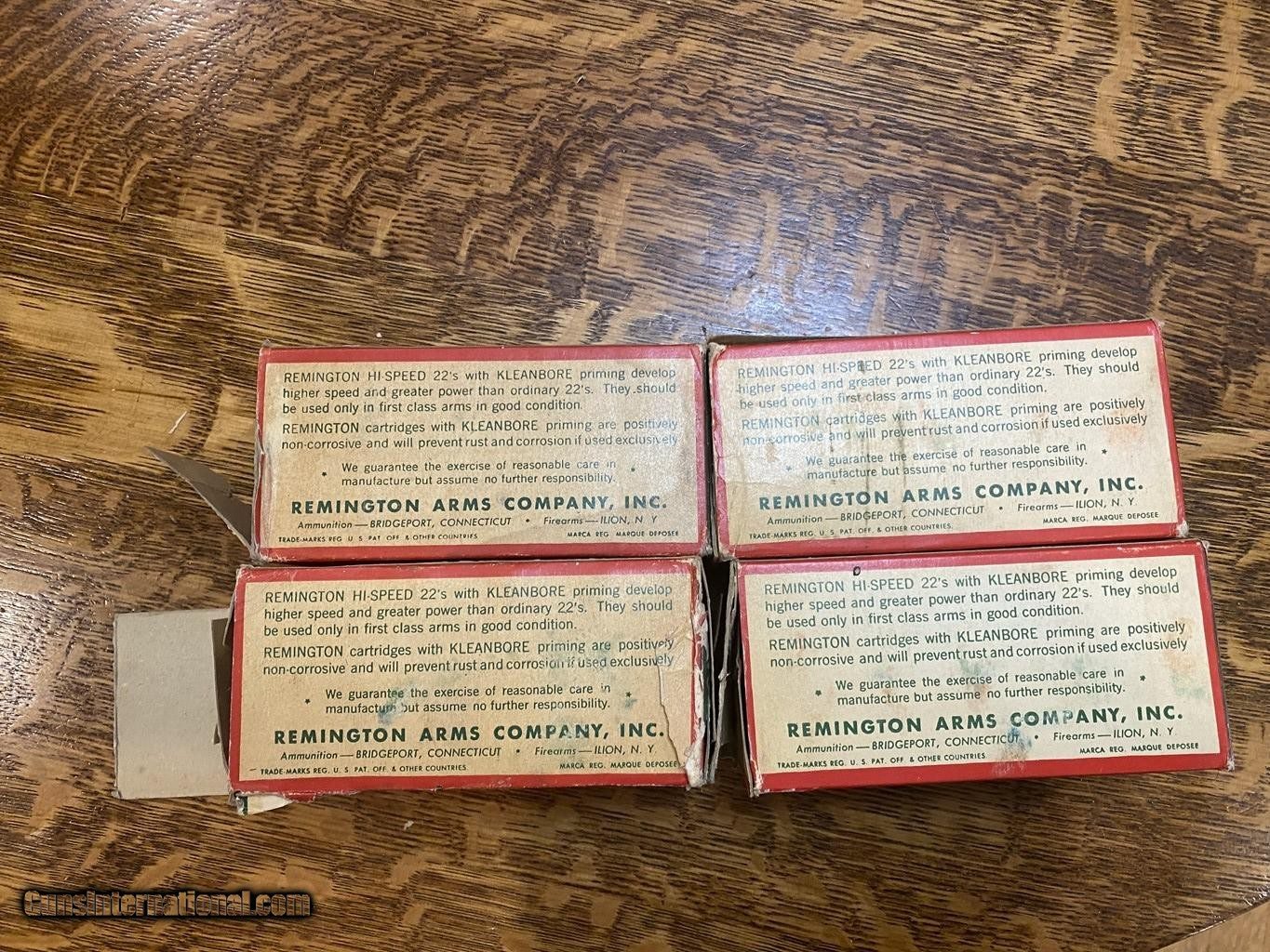 Description: Four 500 count bricks of vintage Remingion HighSpeed Kleanbore 22LR. The sleeves are in poor condition with each having ends missing and some wear. The individual boxes are in very good condition. Please see pictures. Shipping is $25 Fedex SOLD Rifle Caliber: .22 Long Rifle |
