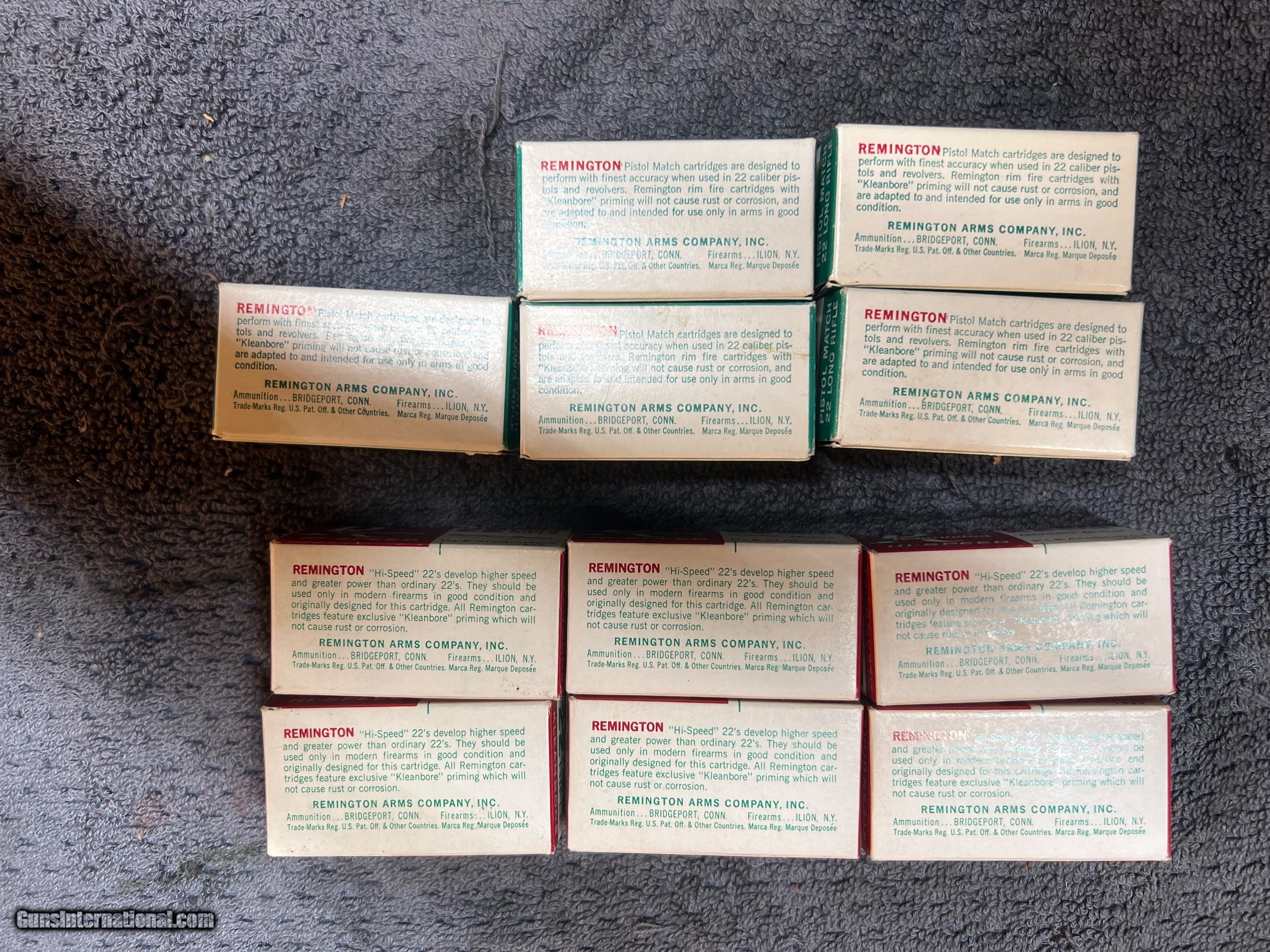Description: 6 boxes Remington hi-speed Kleanbore and 5 boxes Remington pistol match 22 long rifle selling all as one $100 shipped all boxes are excellent condition and full SOLD Rifle Caliber: .22 Long Rifle |