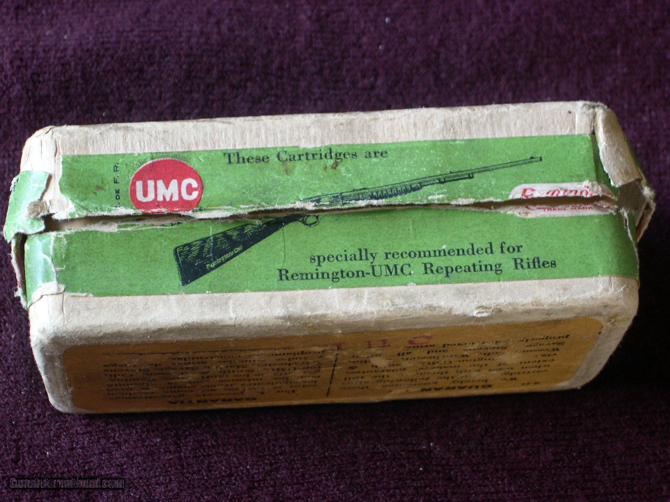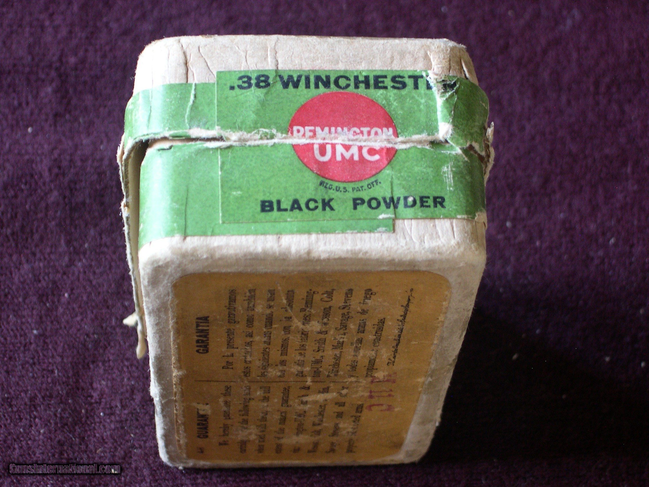 Description: There is one missing and two empty brass in this box of 50, Black powder ammo, nice bright box great for display with SAA or Winchester 92's and also 14 1/2 remington rifles , picture on side of box, of that rifle. These are original not reloads. SOLD |