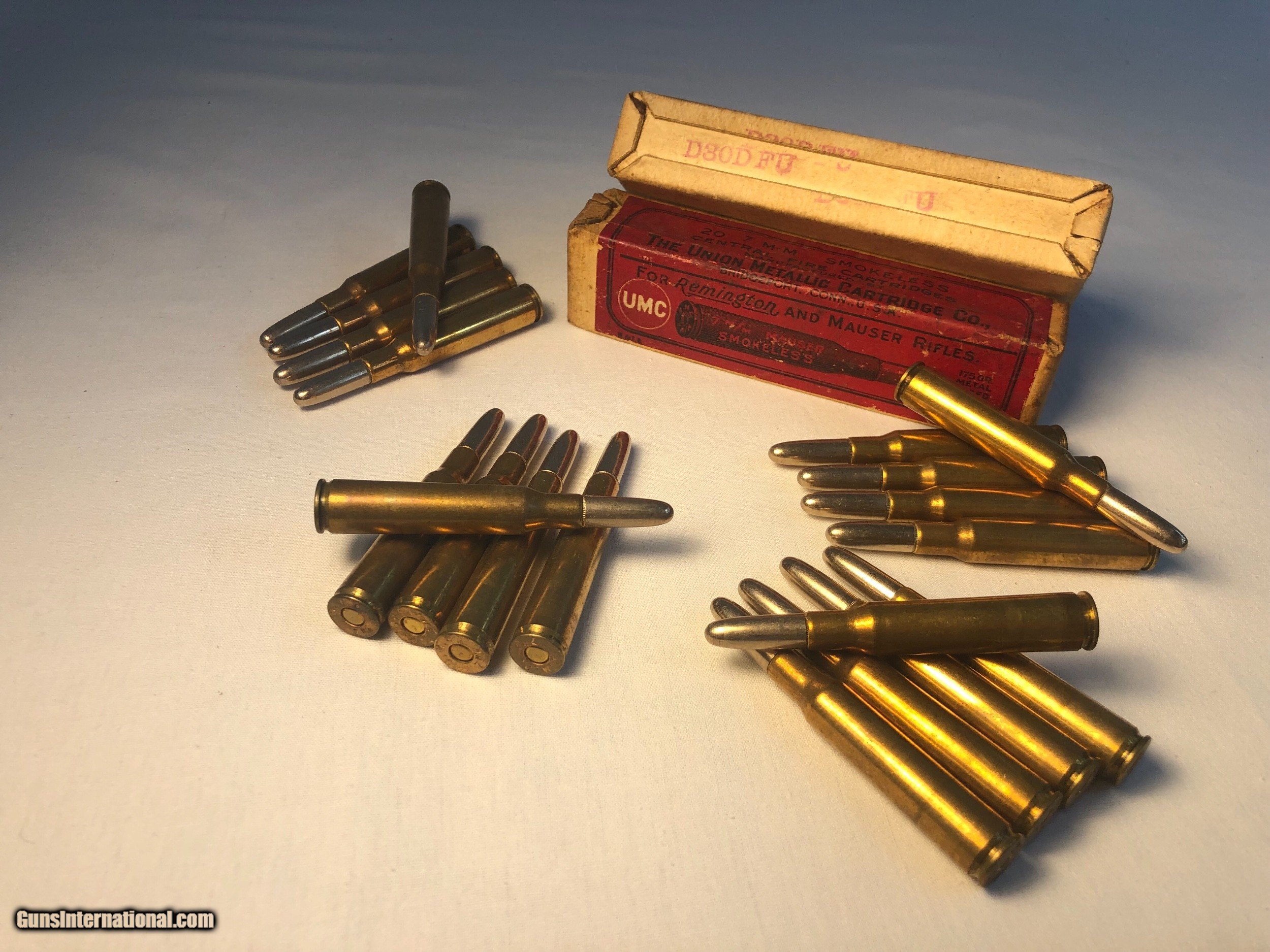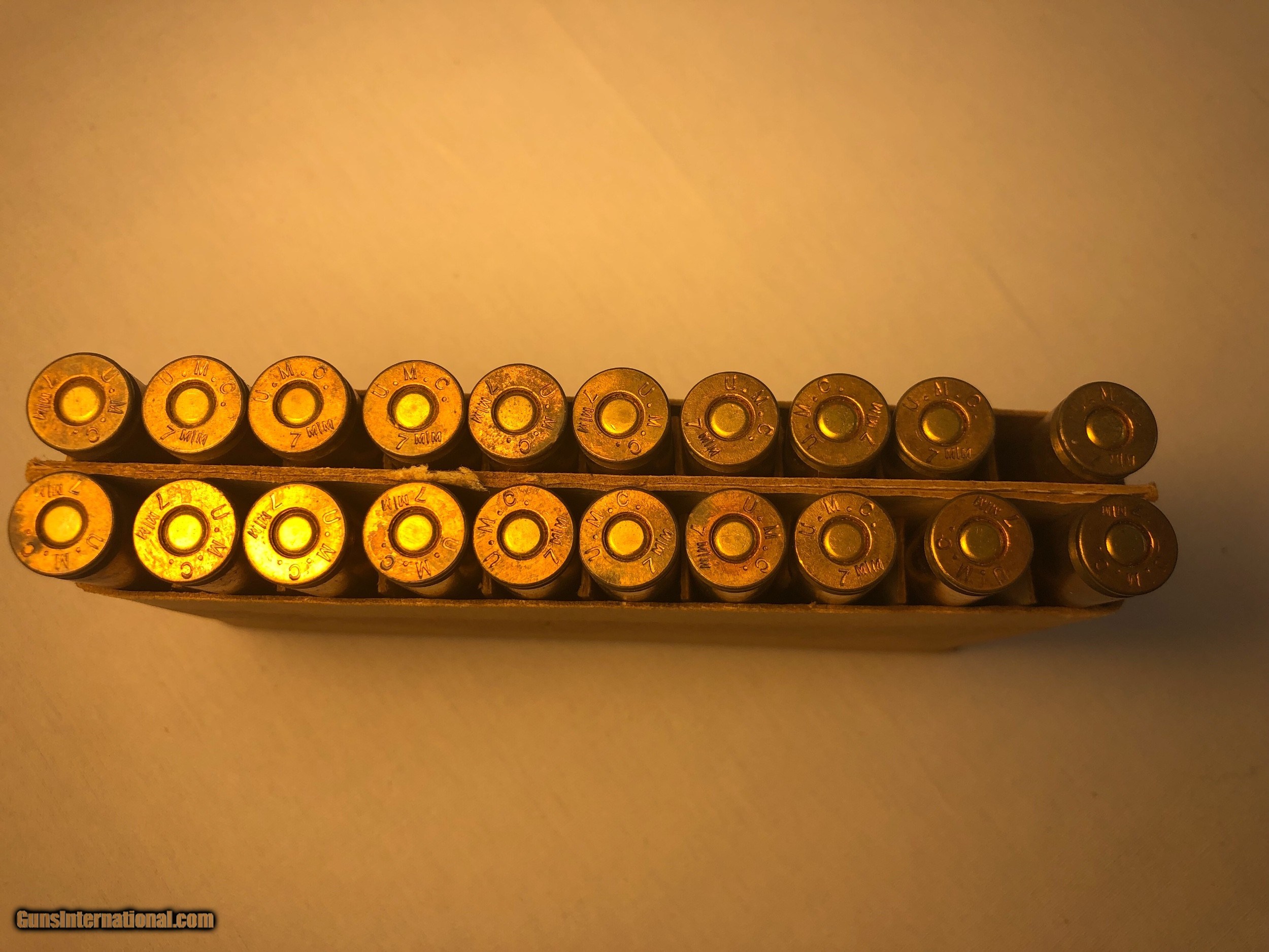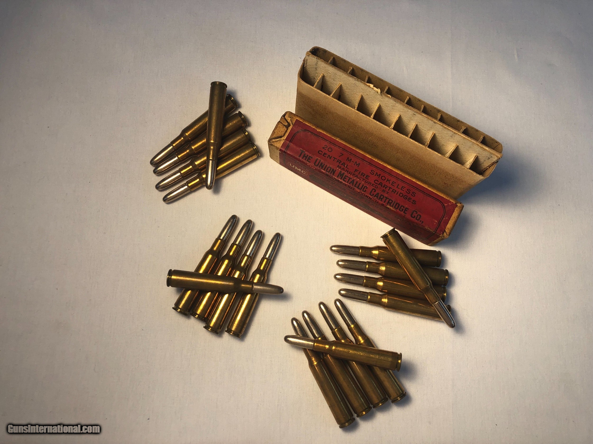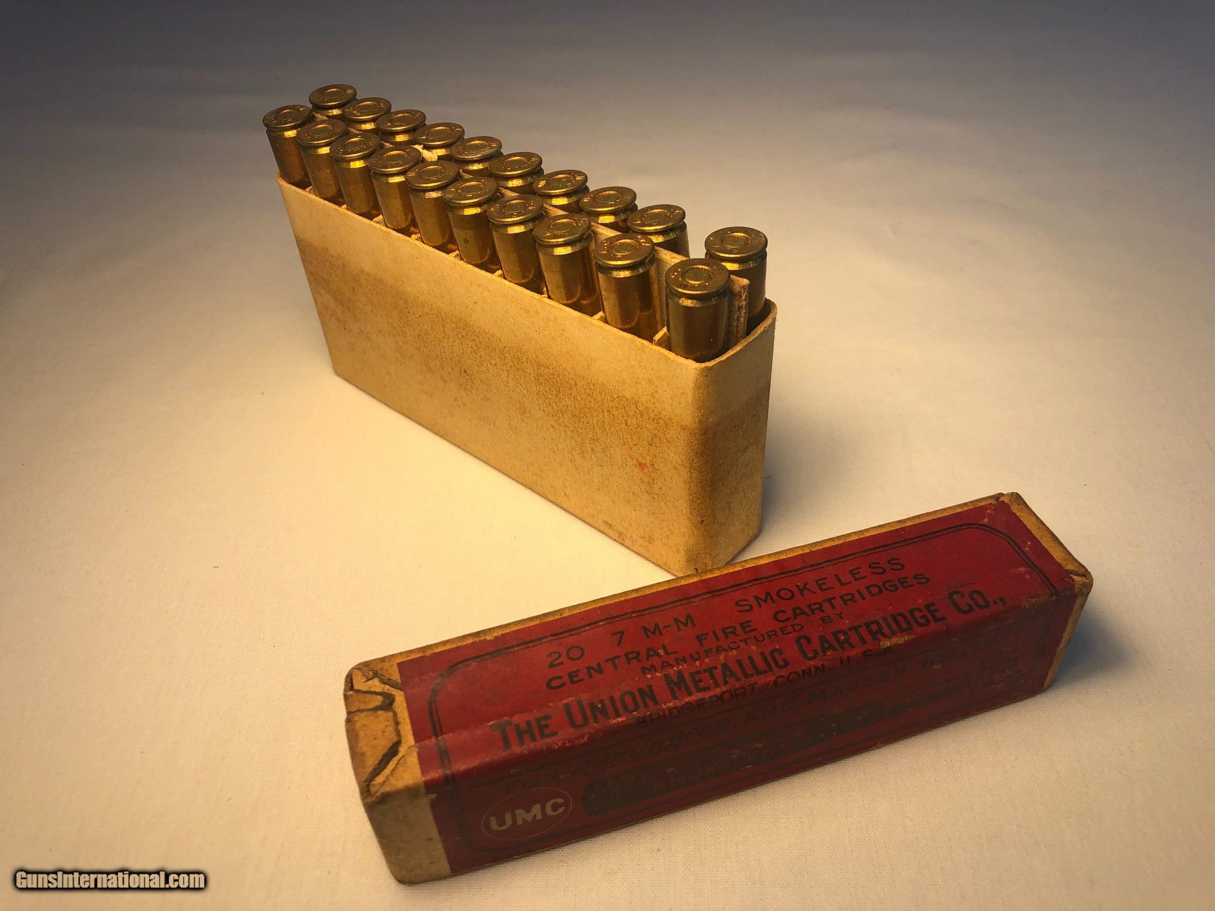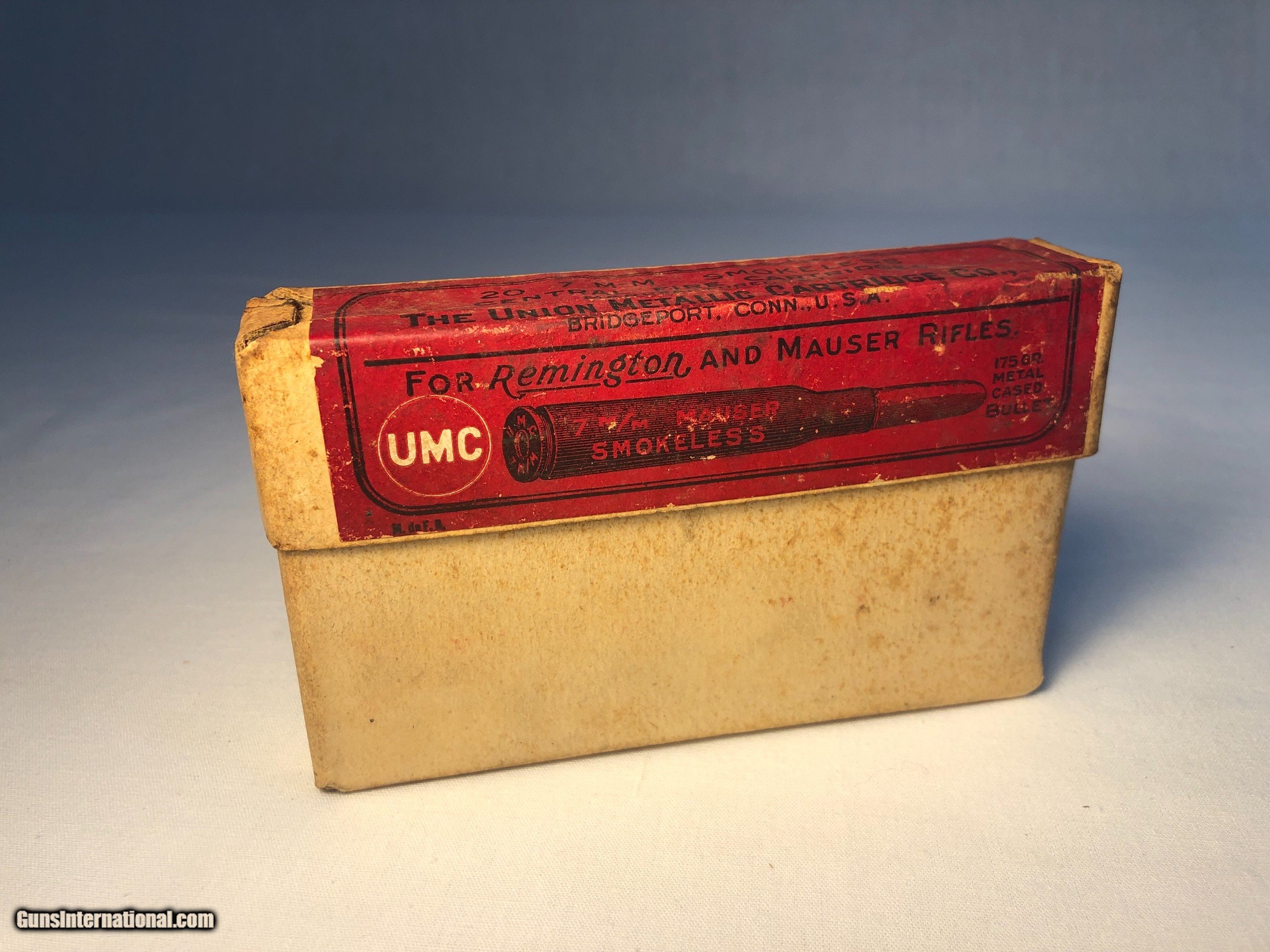 Description: Complete box of UMC 7mm Remington Mauser smokeless ammunition. Ground shipping and handling is extra to the lower 48 states. (Except no ship to CA & NJ) This ammunition is sold as a collectors item only and we make no quarantees to its quality or functionality. Please know and abide by your local laws in regards to purchasing ammunition. Signature required at point of receipt. We accept Master Card and Visa, personal check, or money order. SOLD |
