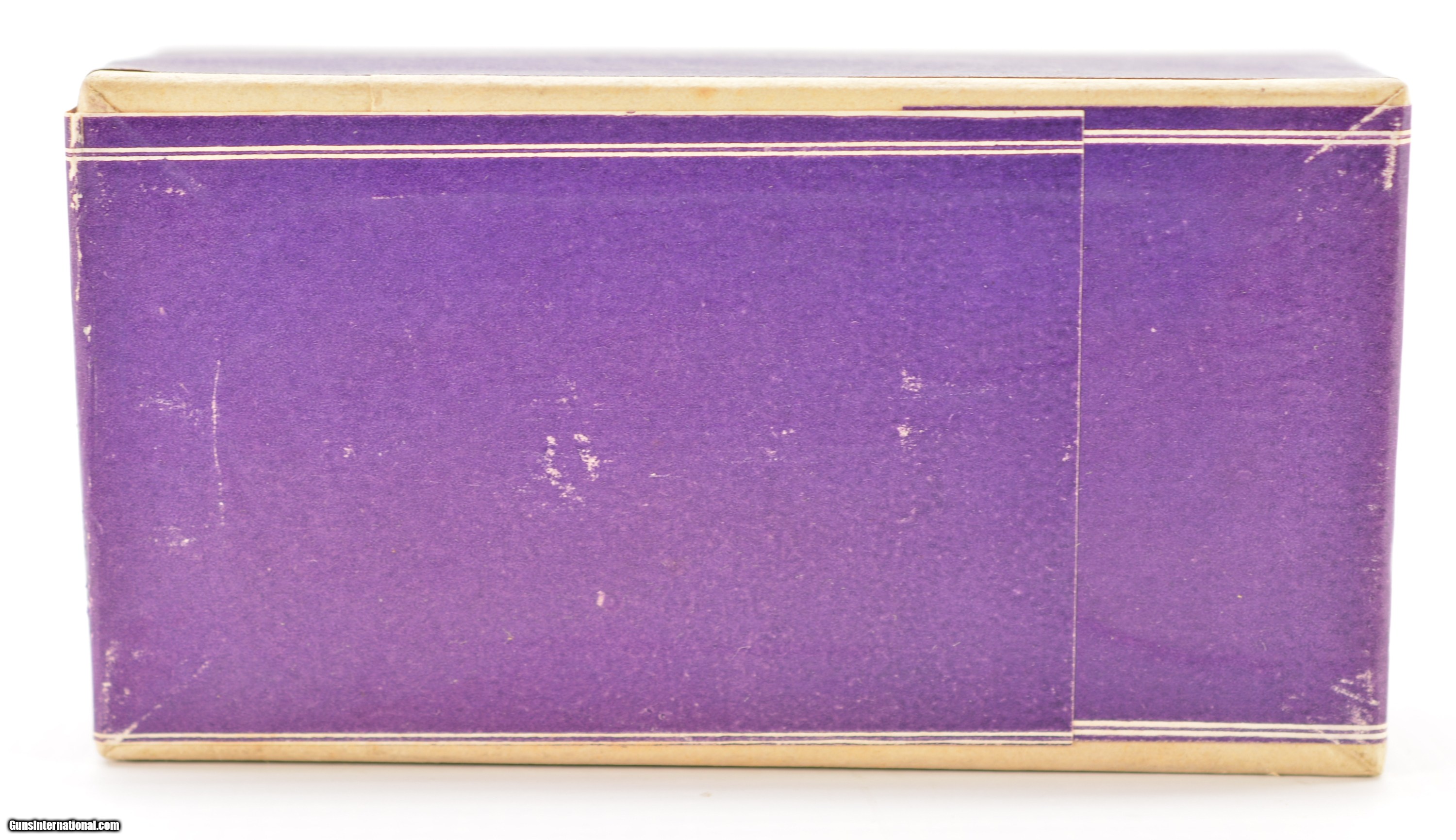 Description: This is a fantastic sealed box of .38 S&W Shot Cartridges manufactured by the Robin Hood Ammunition Company in Swanton, VT. The full box of 50 rounds is in excellent condition with very slight loosening of the side label in the rear of the box. There is almost no scuffing with crisp edges and an attractive purple label showing a nice cartridge cut that is knocked out of the solid color which shows slight fading on the top with vivid color on the side and bottom labels. SOLD Manufacturer: Robin Hood Model: Ammo Caliber Info: .38 S&W Gauge Info: .38 S&W |