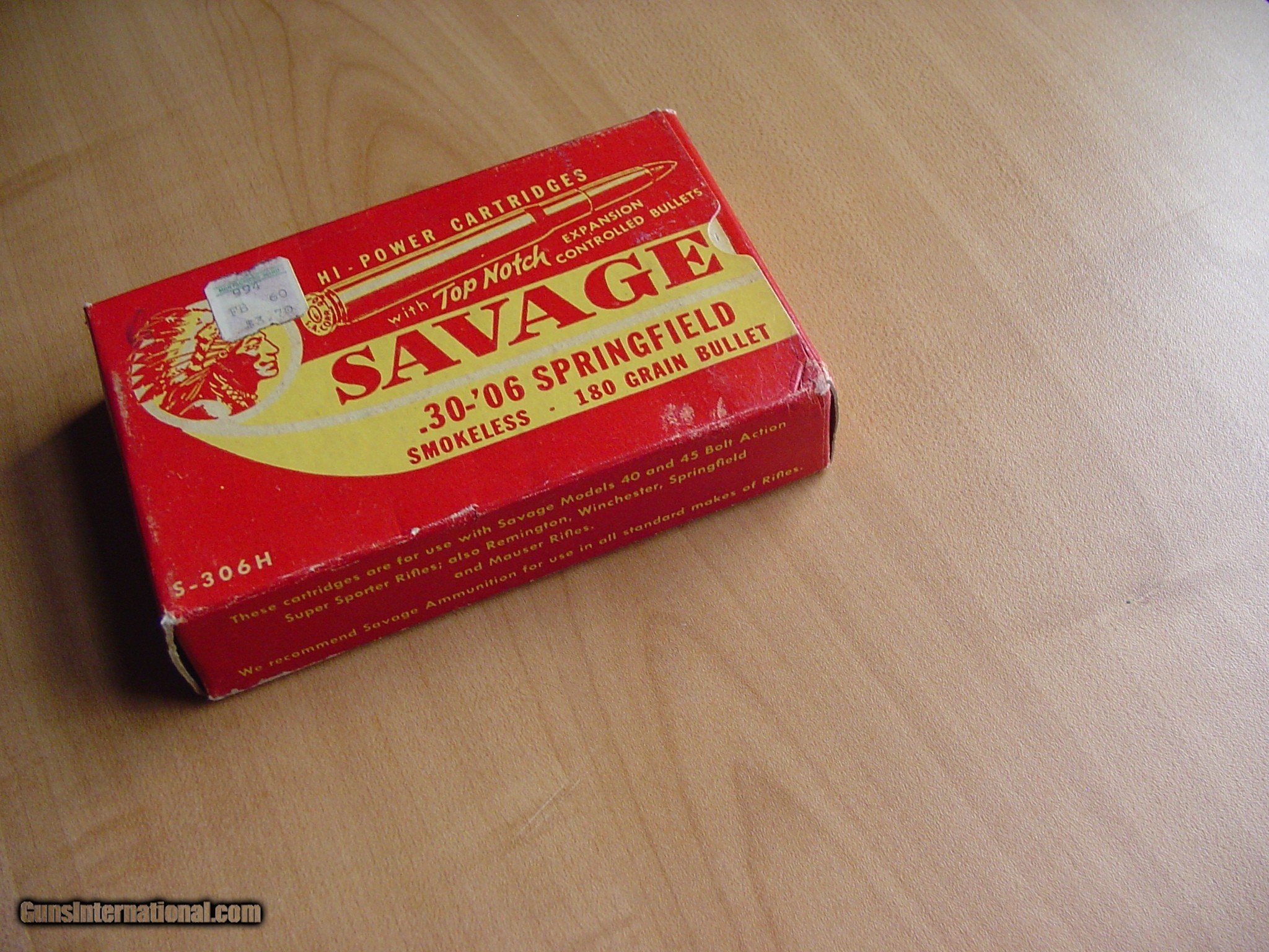 Description: Savage box in excellent condition and ammo is near mint condition. Still has price sticker of $3.70, that I left on but should be removable. No sales to: CA, HI, AK, CT, NY, IL, MA, WASH. DC, NJ, or where prohibited. Buyer must be 21 years of age, and send a copy of driver's license. Postal Money Order only. Sale Pending SOLD |