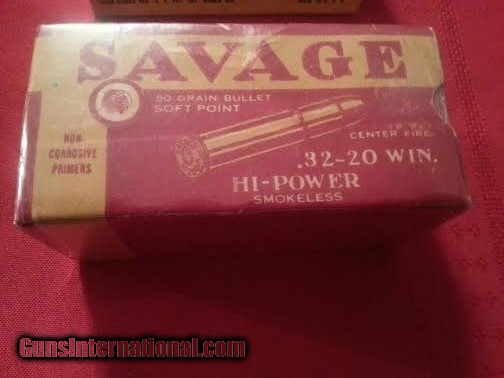 Description: Savage 32 20 Win. High Power. Soft Point.Shrink wrap, full box. SOLD |