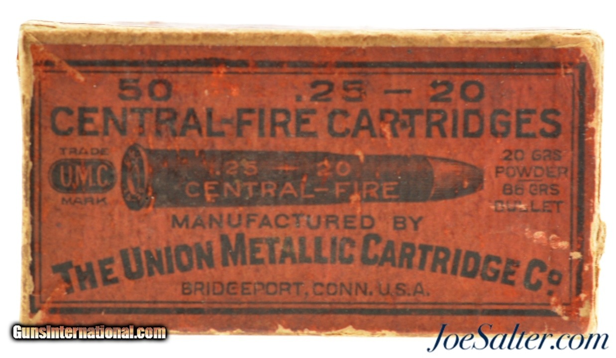 Scarce Full Box UMC 25-20 Stevens Black Powder Ammo 86 Gr Bullet