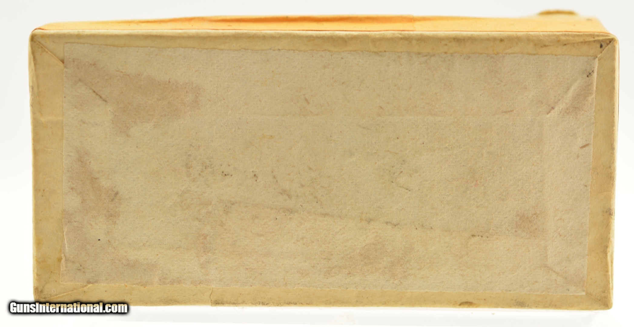 Description: This is a full and sealed box, 100 original rounds, of .22 Short ammunition manufactured by the US Cartridge Company in Lowell, Massachusetts and is from the 1870's Woodcut label issues. The one piece box has a beautiful wood cut graphic on the primary label featuring hunting scenes, rifles and pistols along with the company shield logo. The label has crisp, clean graphics with an unfortunate torn missing piece in the lower bottom left corner. The yellow/orange side seal is fully intact. The box has nice corners and edges with the cover slightly uneven and bubbled up a bit. Identified as US-2 S-1(b) in Roger Huegel's online .22 Rim Fire Box ID Reference based on the original Dunn classification system. A beautiful example of perhaps one of the best looking 22 boxes from the late 19th century. SOLD |