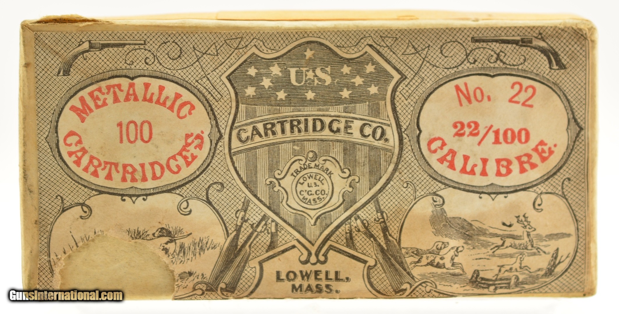 Scarce Sealed! 1870's Woodcut US Cartridge Co. 22 Short 100 Count
