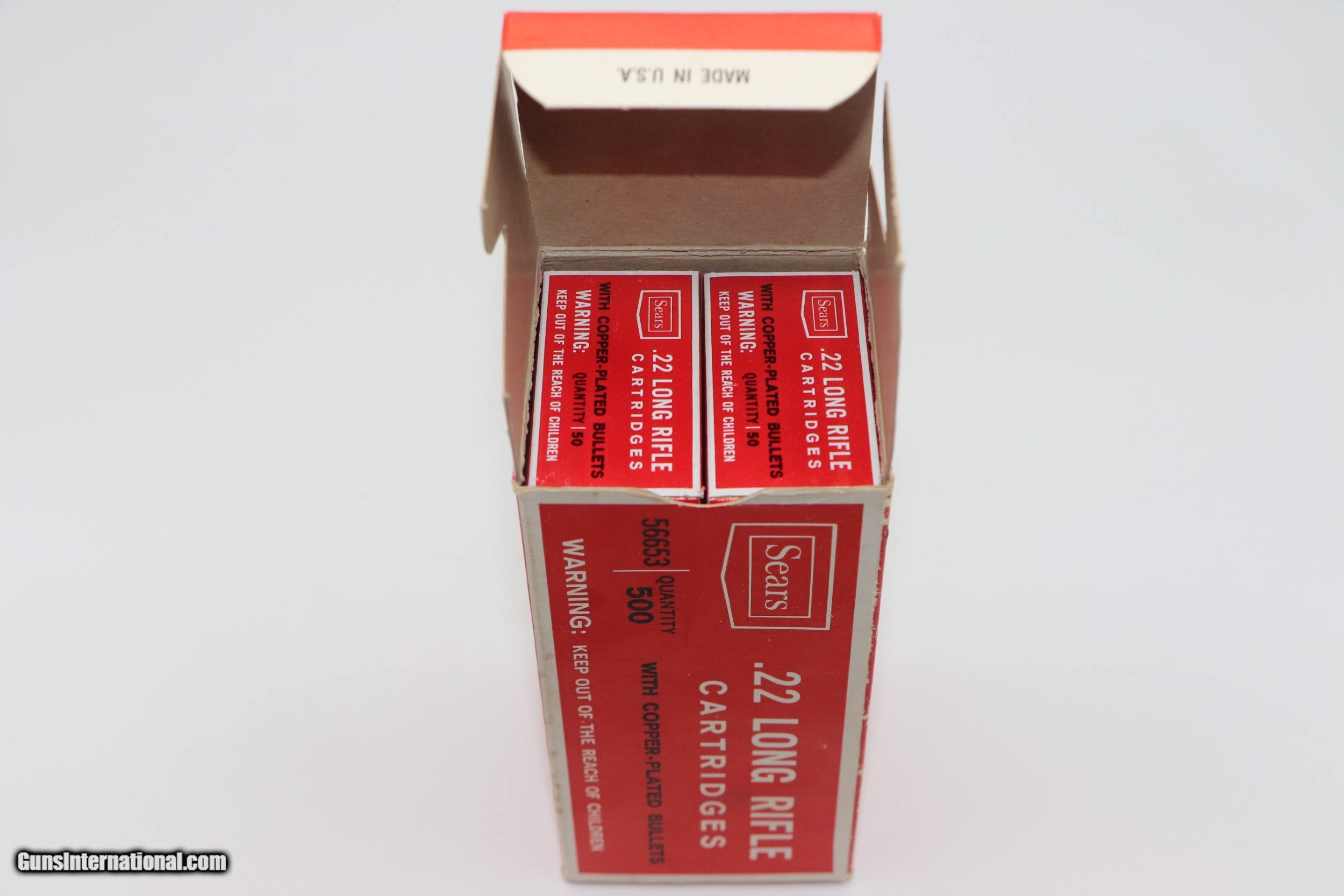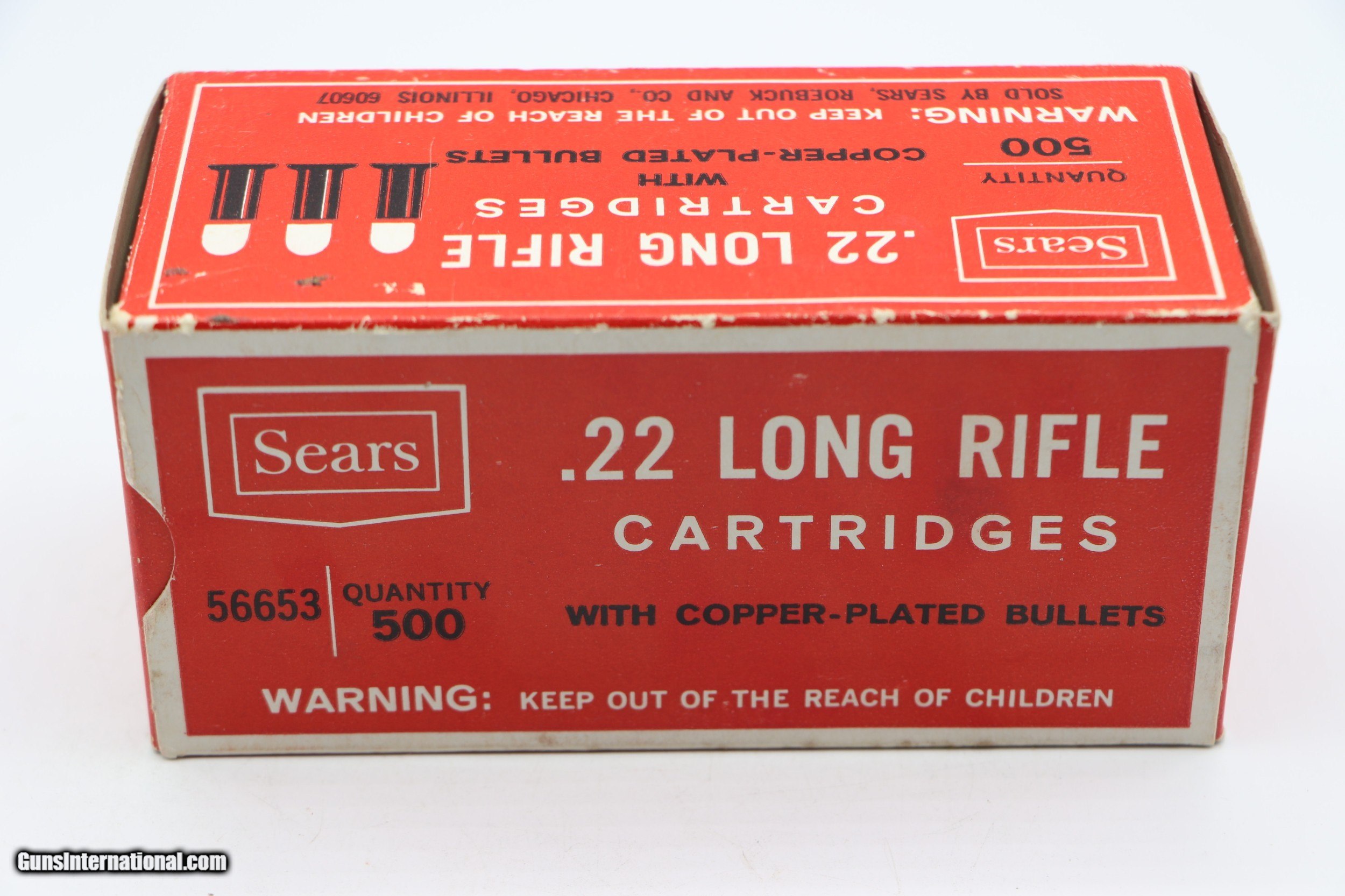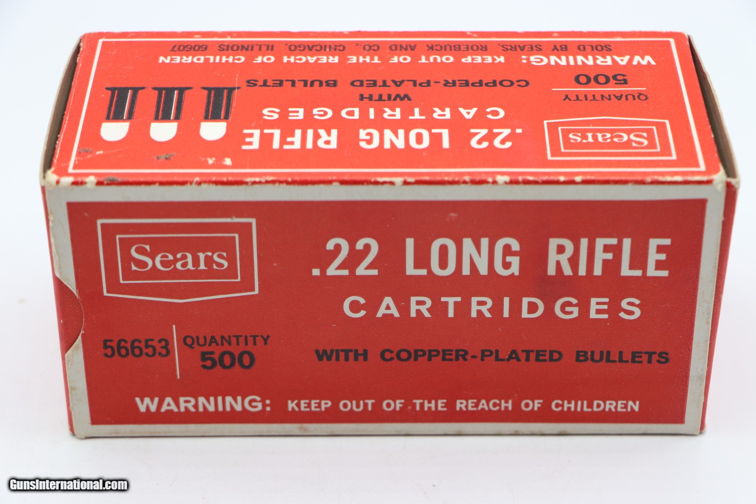Description: Sears Full Brick 500 Rounds - Both Brick Box and Inside Boxes Near Mint. No. 56653. Add $15.50 S+H. Lower 48 Only SOLD Rifle Caliber: .22 Long Rifle |