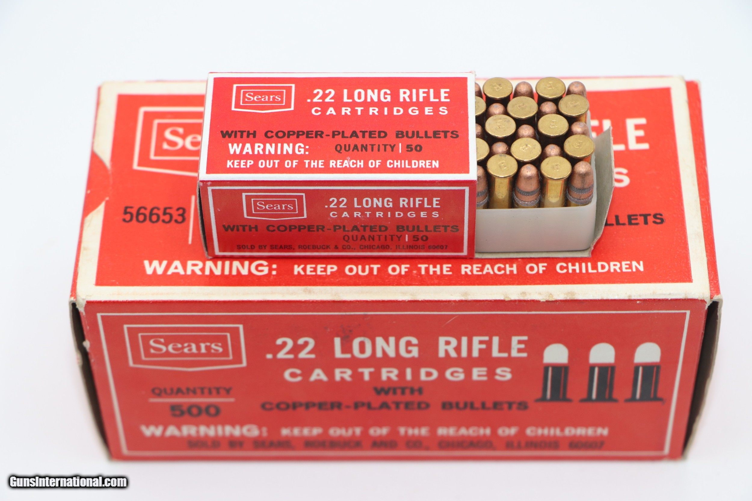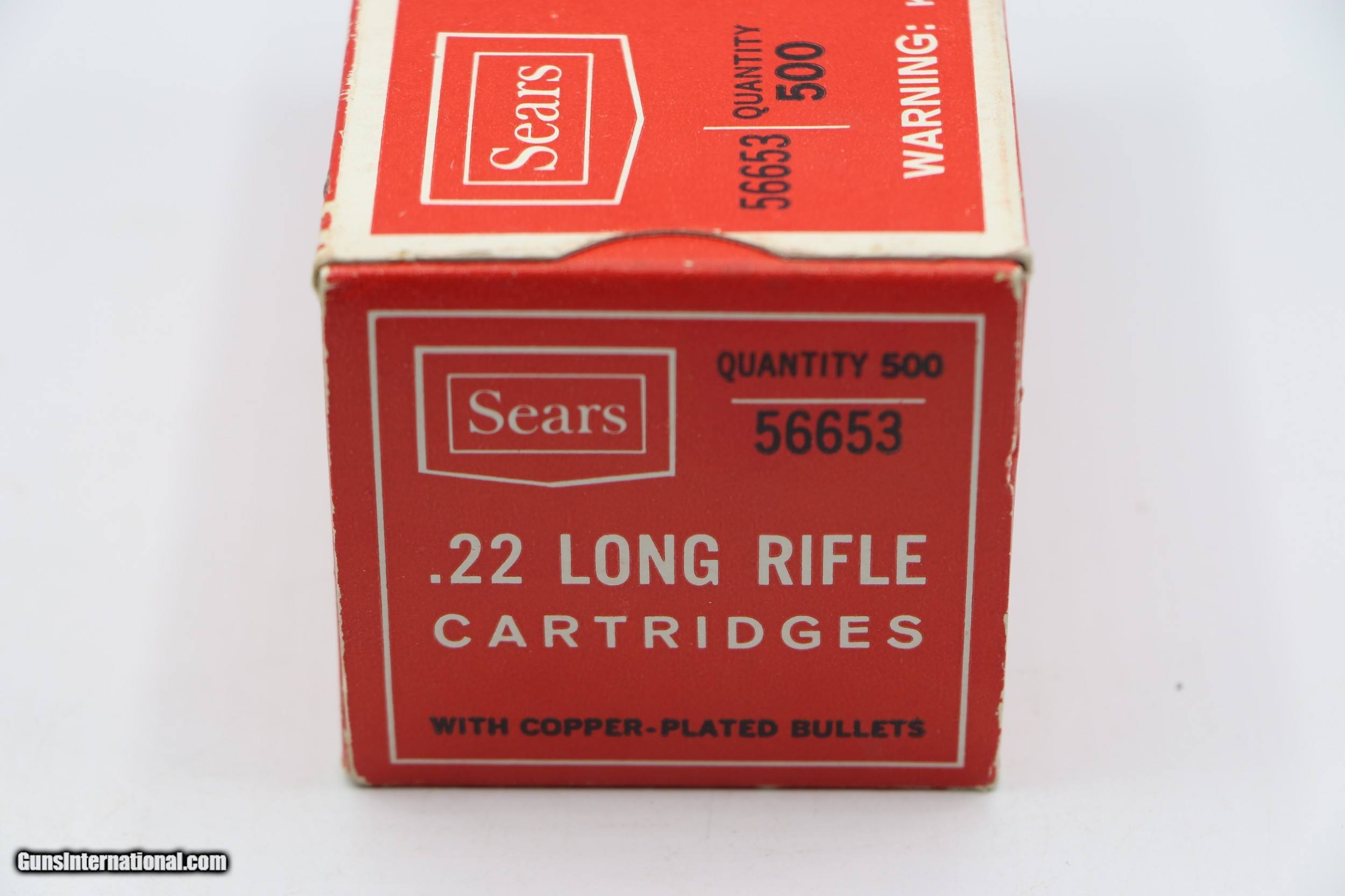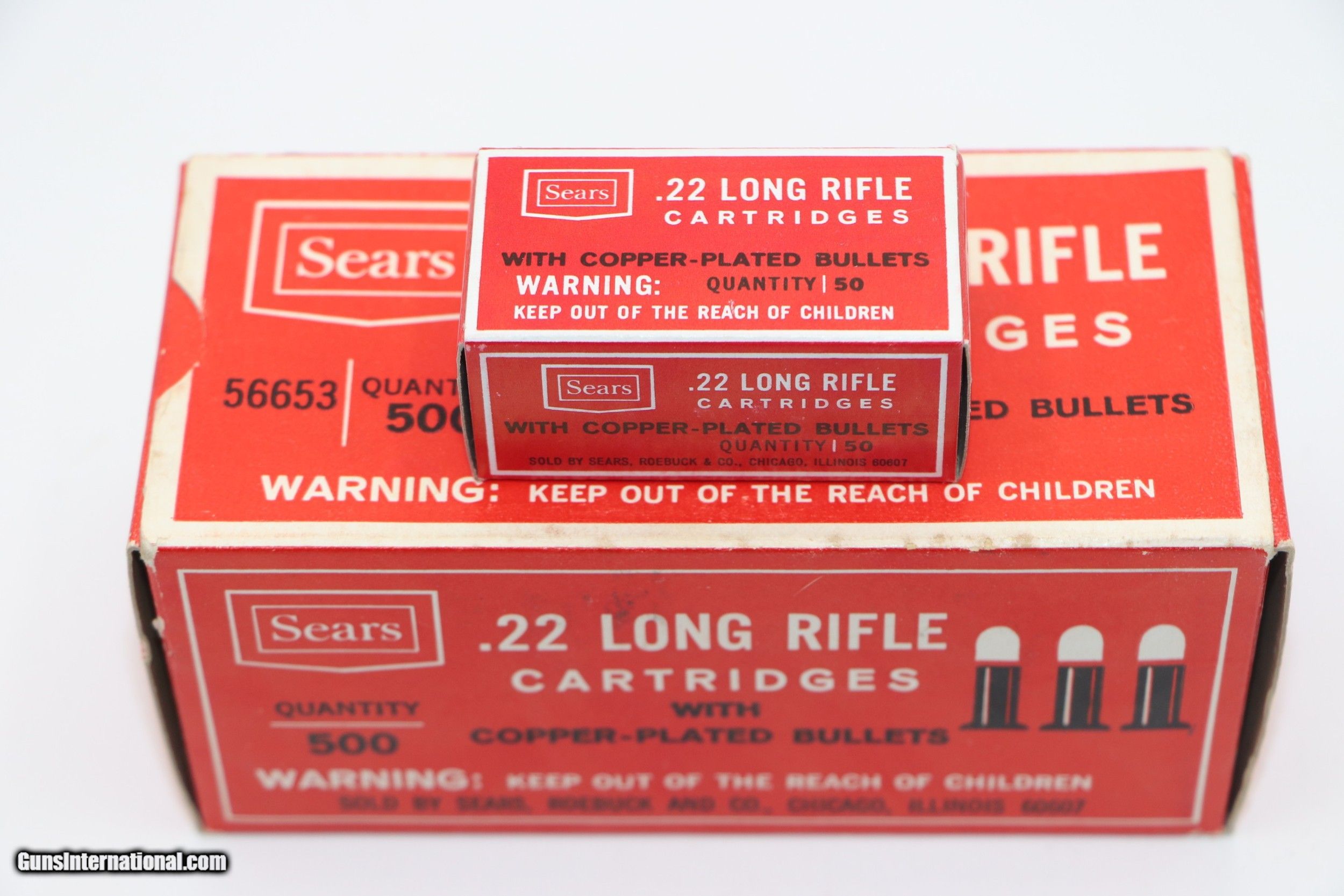 Description: Sears Full Brick 500 Rounds - Both Brick Box and Inside Boxes Near Mint. No. 56653. Add $15.50 S+H. Lower 48 Only SOLD Rifle Caliber: .22 Long Rifle |