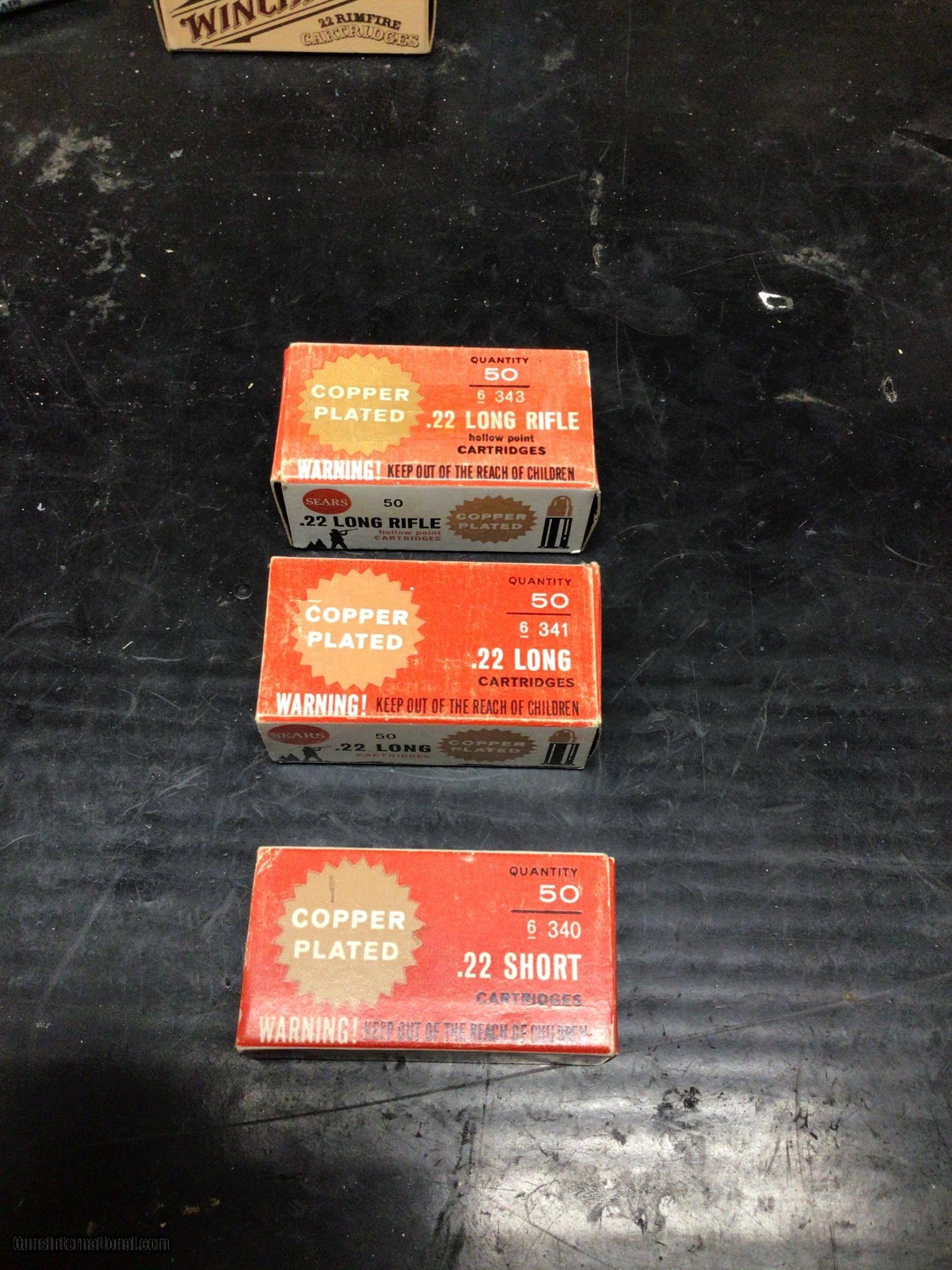 Description: sears copper plated one box each 22 short 22 long 22 long rifle SOLD |
